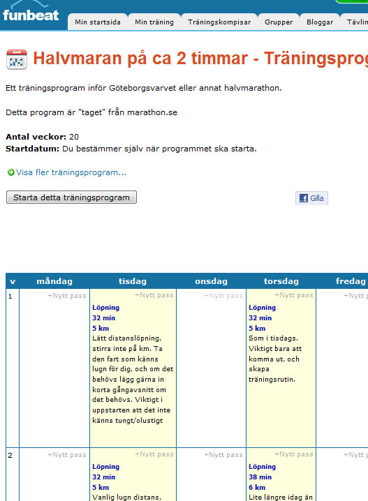 Kollade till på Funbeat när jag skulle behöva starta mitt löparprogram för att vara i form inför Göteborgsvarvet. Det var förra veckan (!) Bara att köra igång nu då…Det krävs tre dagars löpning/vecka plus att jag skulle behöva tre dagars skidåkning/vecka inför TjejVasan….Inte plats för någon annan träning alltså….