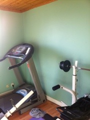 Nu när jag har målat färdigt på utsidan av huset så är det här mitt nästa projekt! Jag ska börja med att måla väggarna vita – kanske ha en fondvägg i en knallig färg som man blir glad av 😉 Jag ska köpa en stor spegel att ha på väggen och jag ska införskaffa mig lite andra roliga träningsredskap. Just nu finns det löpband, träningsbänk, balansplatta, ”trappmaskin” (eller vad de heter – använder den ändå aldrig…), hopprep och gummiband. Först ut på önskelistan är kettlebells. Har läst en del på nätet och är så sugen att prova. Det verkar ju vara kanonträning (om man gör rätt såklart)