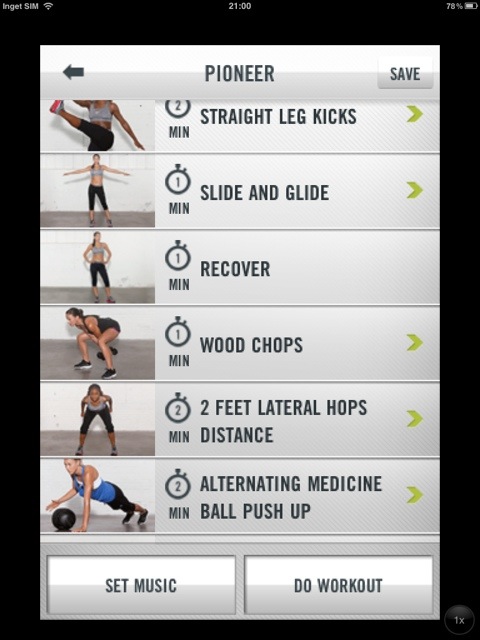 Jag satt och bläddrade igenom flera program och fastnade för ett 45 min program under fliken Get Lean. Programmet heter Pioneer och såg väl inte så farligt ut vid första anblicken – men jösses vad jobbigt det var. Svetten forsade och kläderna var genomblöta efter 45 min.