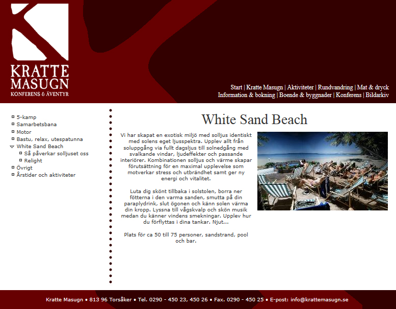 Vi har varit där en gång tidigare och jag kan verkligen rekommendera det. De har gjort en ”sandstrand” med riktig sand och solstolar. Sedan är det starka lampor i taket som ska föreställa solen och den går upp och blir starkare och det blir ljusare och ljusare – precis som på rikigt. Om man har bra fantasi så kan man drömma sig bort och låtsas att man verkligen är utomlands 😉 I allafall under 3 timmar – sedan går solen ner igen…