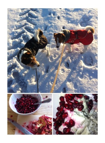 Vädret var så ljuvligt idag så att jag bestämde mig för en riktigt lång och härlig promenad. 9 km blev det och de små Jack Russell killarna trippade glatt på i snön – de har nog aldrig gått så långt förr – men det gick bra.