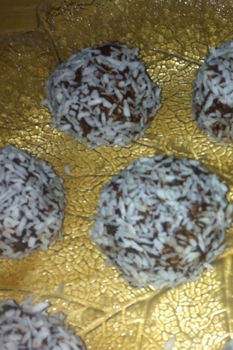 Rullas i cocos. Jag gillade dem jättemycket, men de blir ganska mastiga så ett par stycken står man sig länge på. De smakar ju naturligtvis inte som vanliga chokladbollar men är man väldigt chokladsugen så är de toppen.