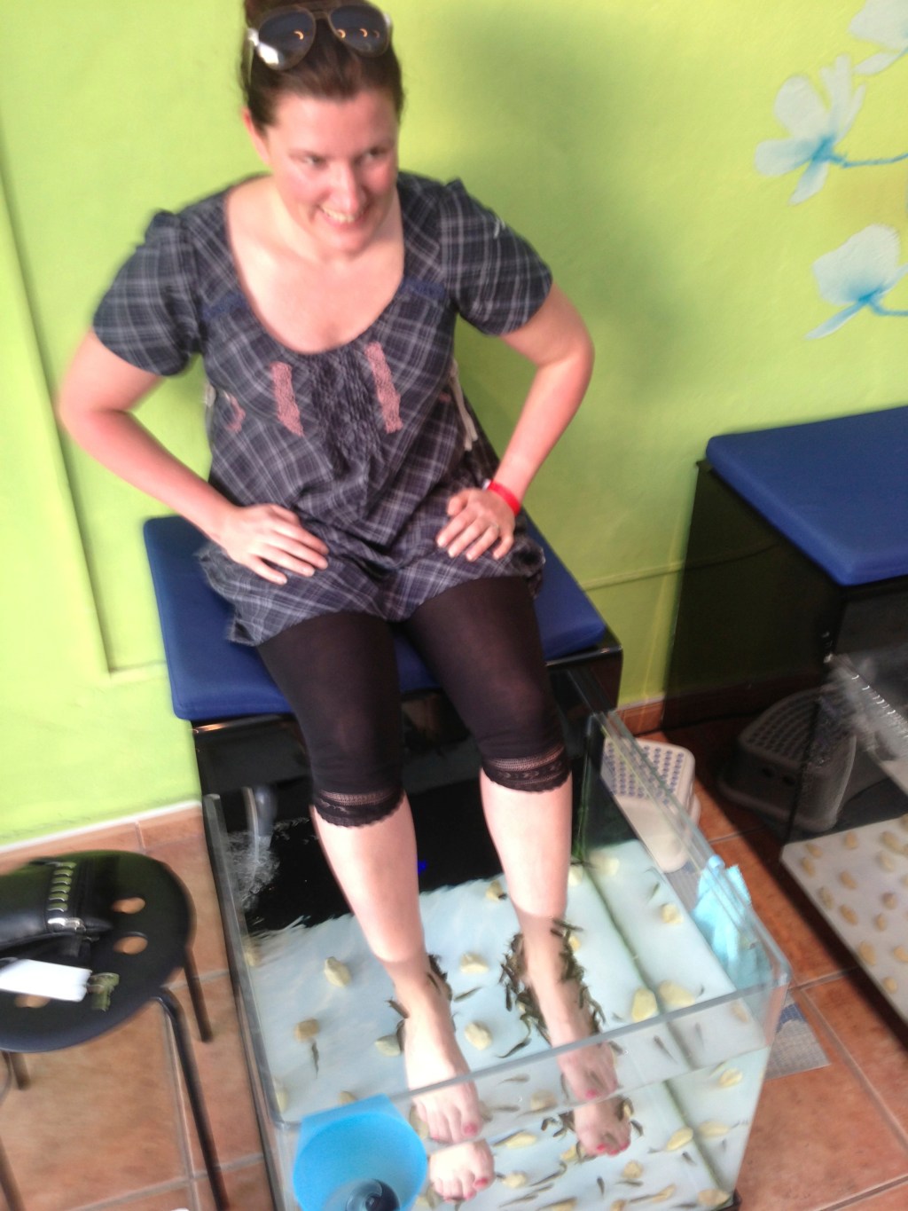 Ett par dagar åkte vi in till staden och åt på samma restaurang som för 12 år sedan – underbart god pasta Carbonara. Vi testade också fisk-spa – som var väldigt killigt för fötterna 😉