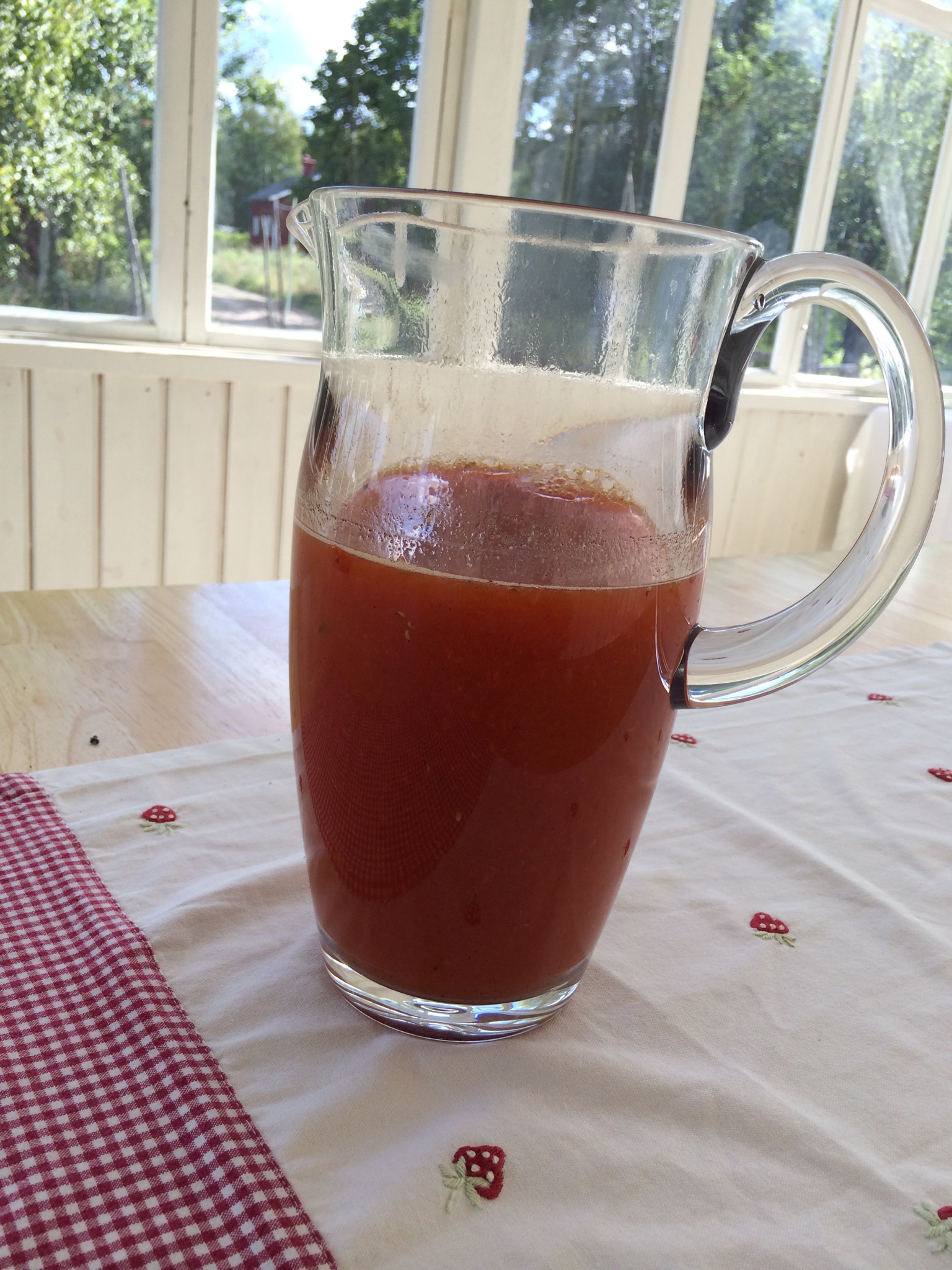Mixa alltihopa med en stavmixer. Sila bort bärmoset.