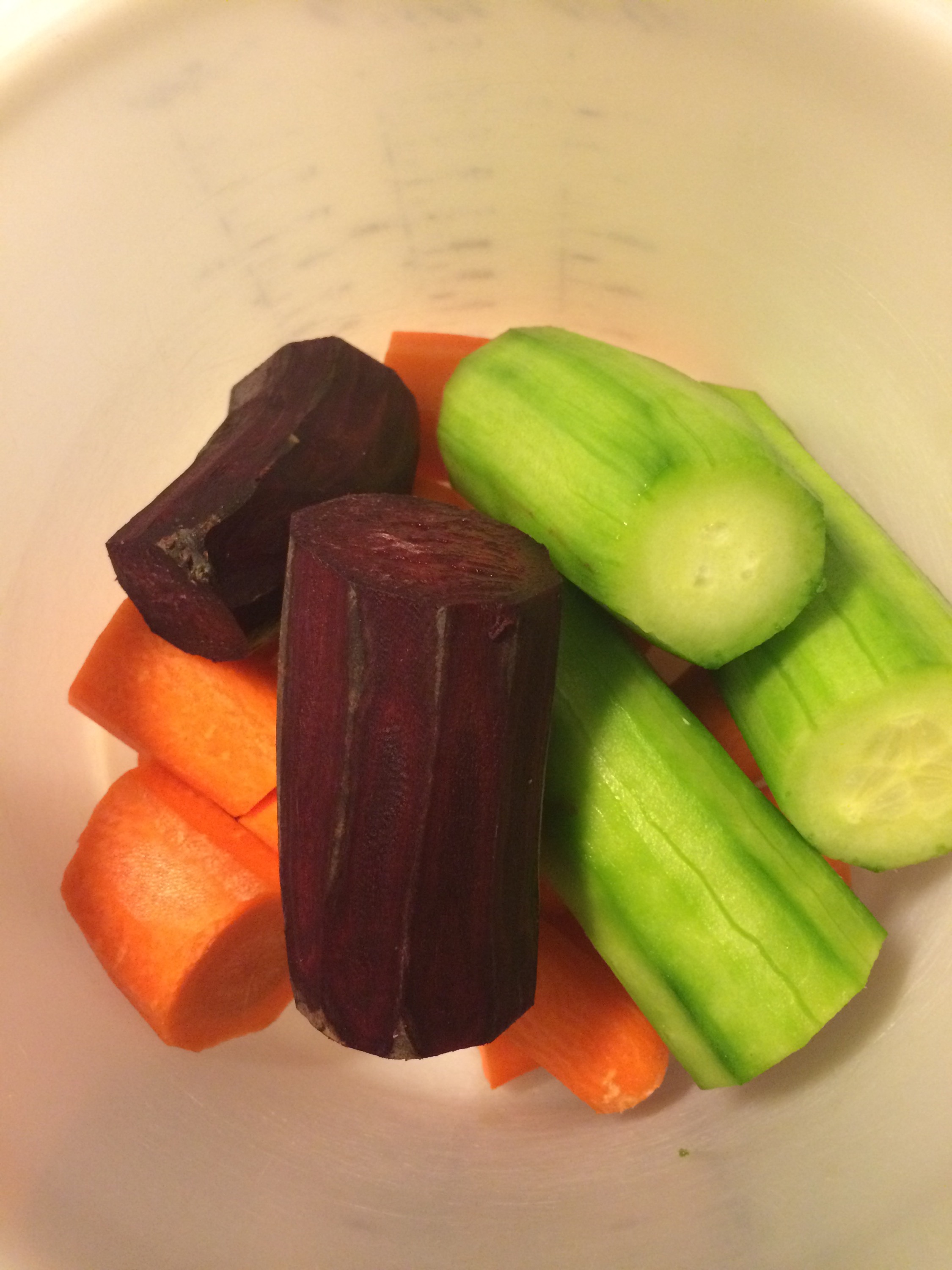 Frukostjuicen blev en juice av rödbeta, morot, gurka, ingefära. Helt OK i smaken.