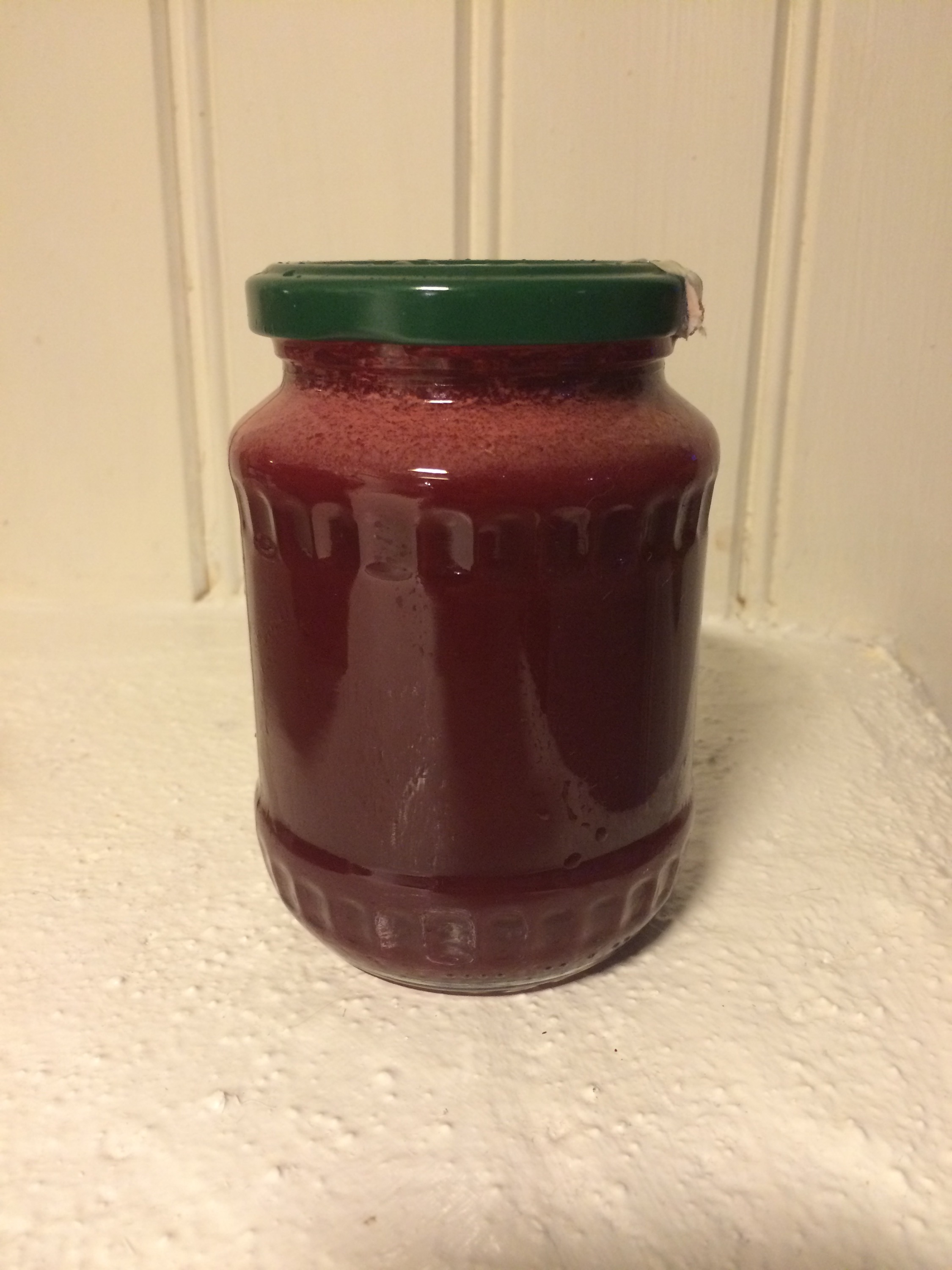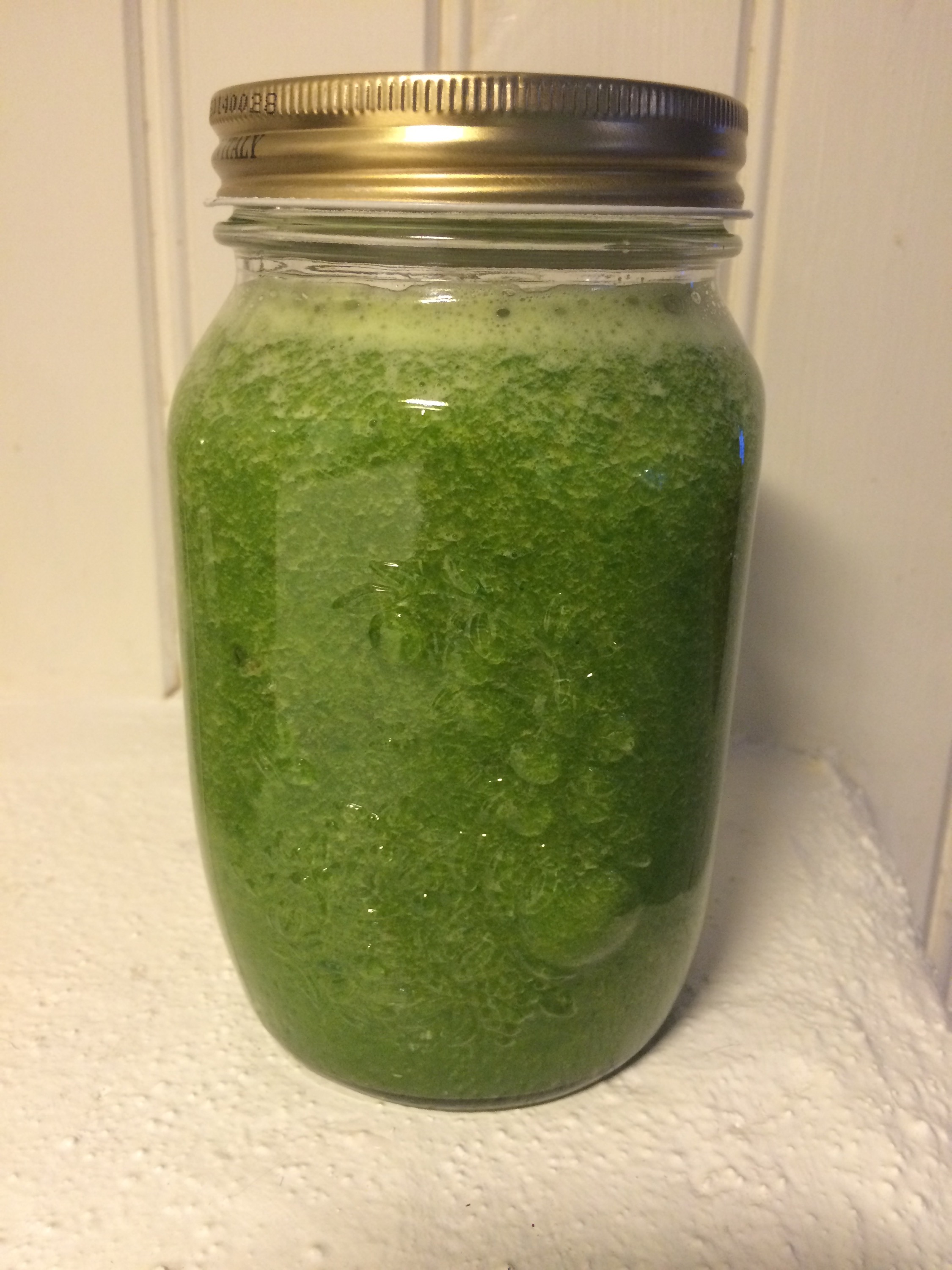 Pressade sedan hela dagens juicer på en gång och fyllde dem i glasburkar (ända upp till kanten för att behålla så mycket som möjligt av näringen)