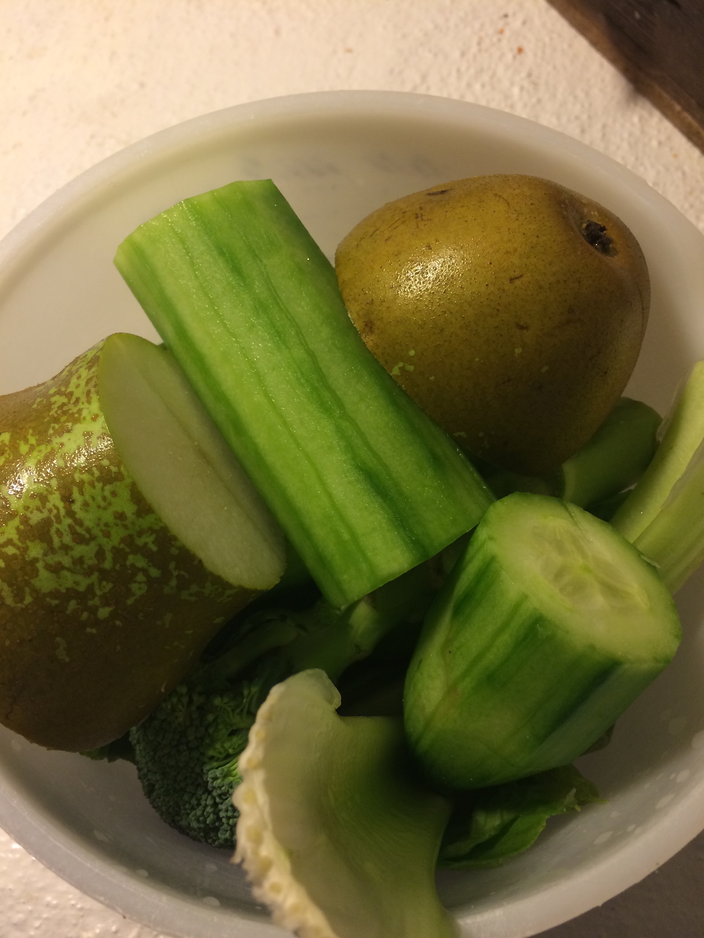 Lunchjuice blev en grön juice (urk -jag har verkligen svårt för gröna juicer) Den innehöll selleri, gurka, romansallad, päron, ingefära, spenat.