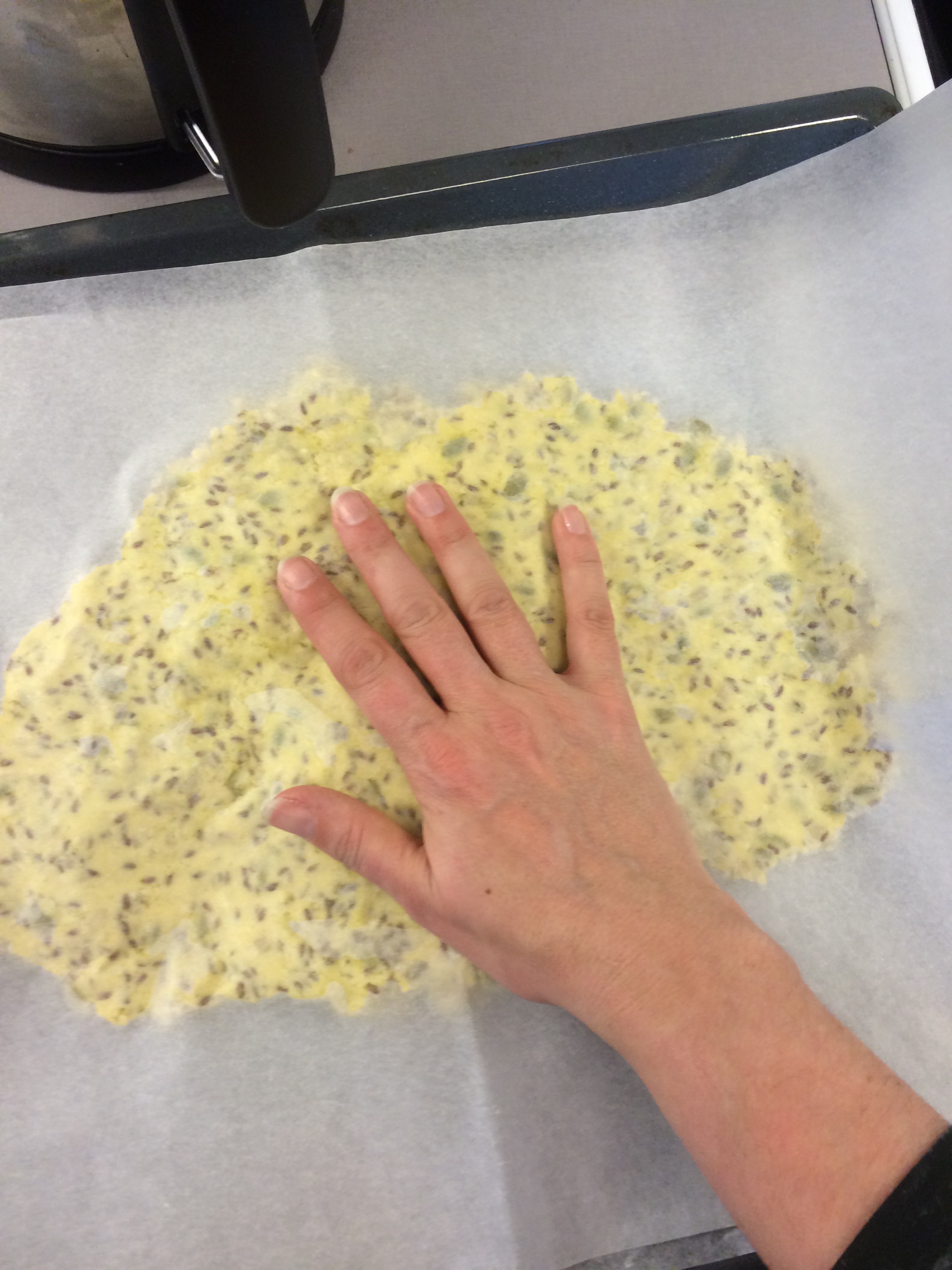 (Tips: Det går lätt att platta ut smeten med handen om du lägger ett bakplåtspapper över)