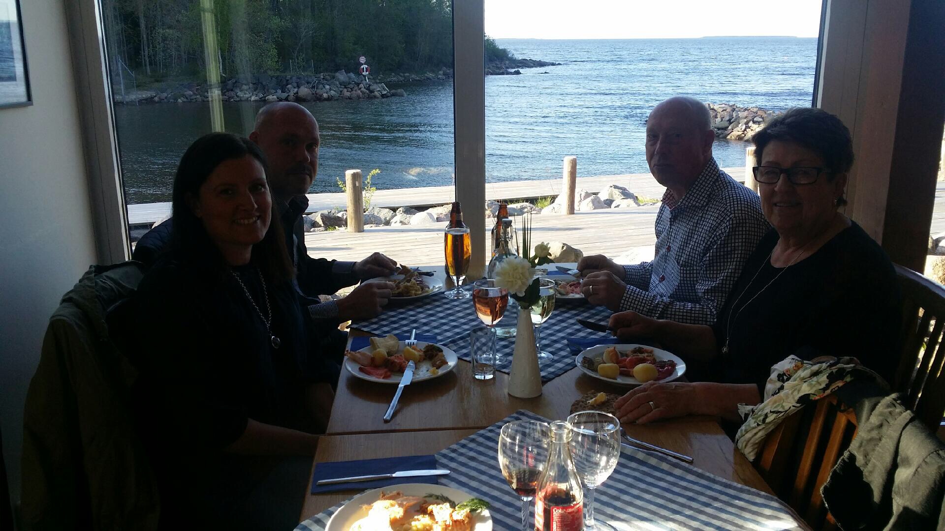 Jag älskar fisk och Skärgårsdsbuffen på Furuviks brygga kan verkligen rekommenderas. Det fanns även oxfilé och fläskfilé för de som inte är så förtjusta i fisk 😉 Vi fick ett bord vid fönstret och utsikten var verkligen underbar. Åh vad jag skulle vilja bo vid vattnet….det är så rogivande att bara titta på vatten.
