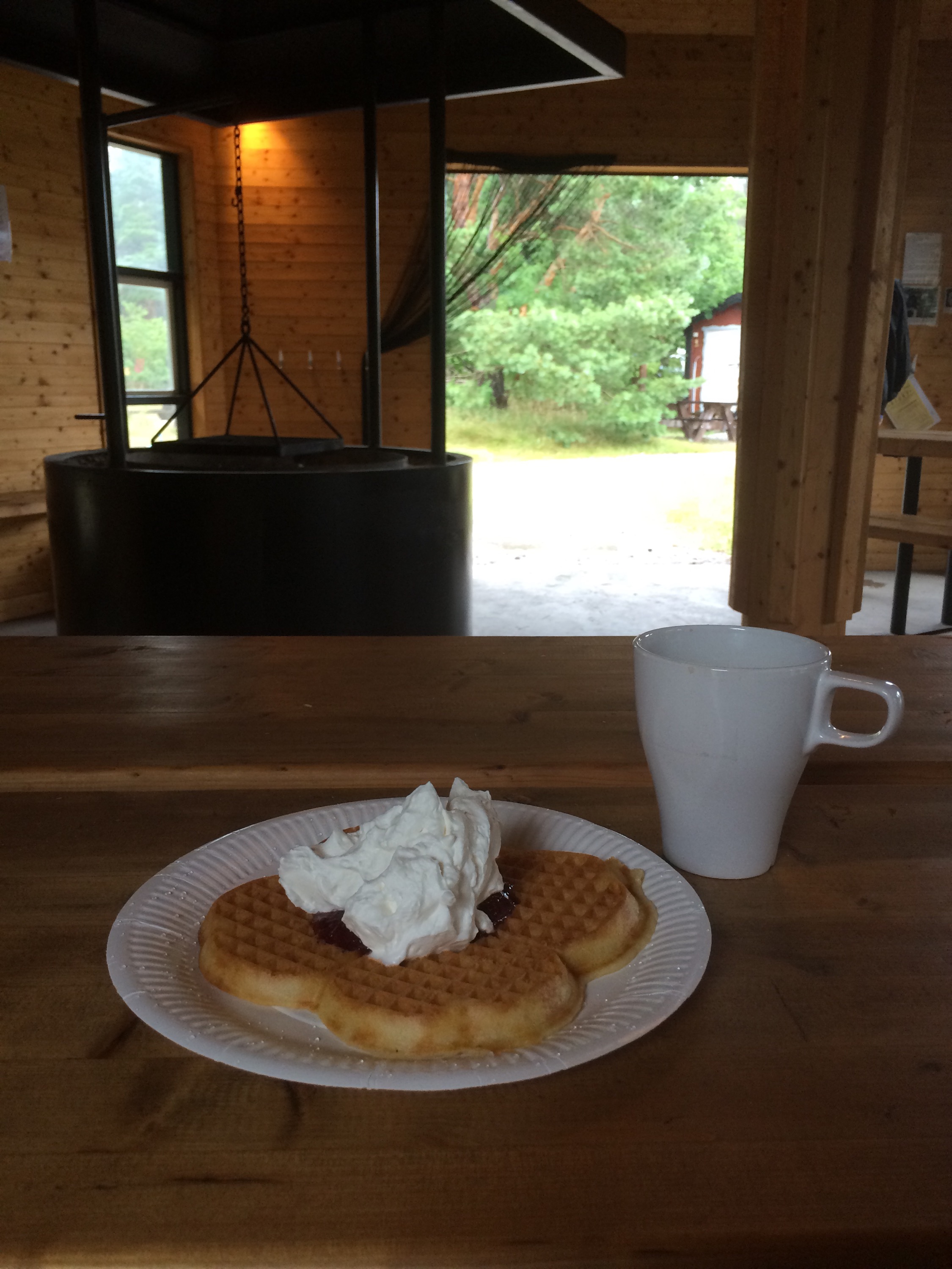 Vidare mot Trollskogen i hopp om att regnet skulle sluta…men där blev det bara en våffla – ingen promenad.