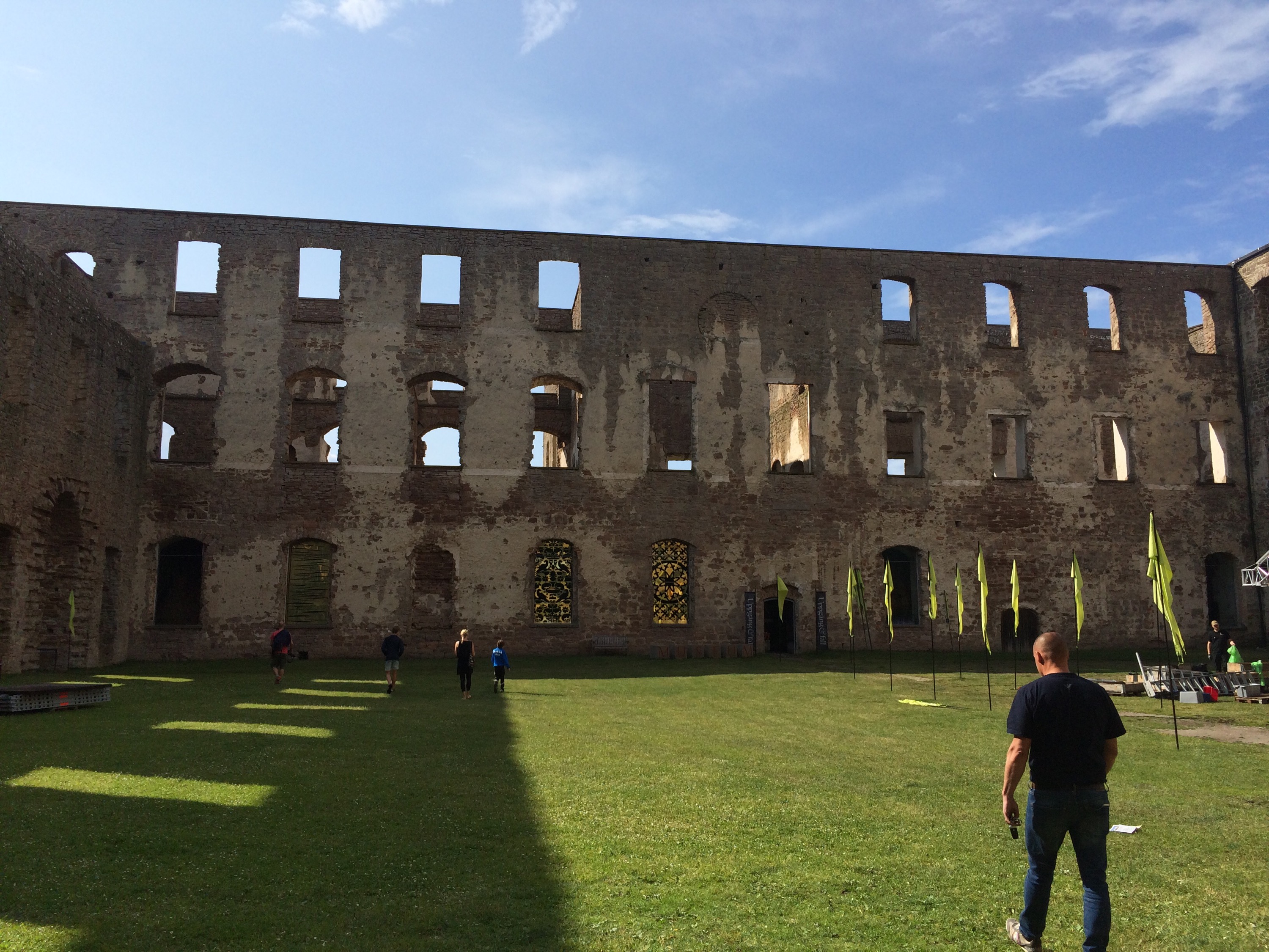 Vi åkte mot Borgholm och då lättade det upp och solen kom fram. Gick runt på Borgholms slott och sedan för att ta cachen Estelles promenad. När vi hade gjort det så stod en hel folksamling ”mitt ute i ingenstans”. Undrar vad de väntar på?