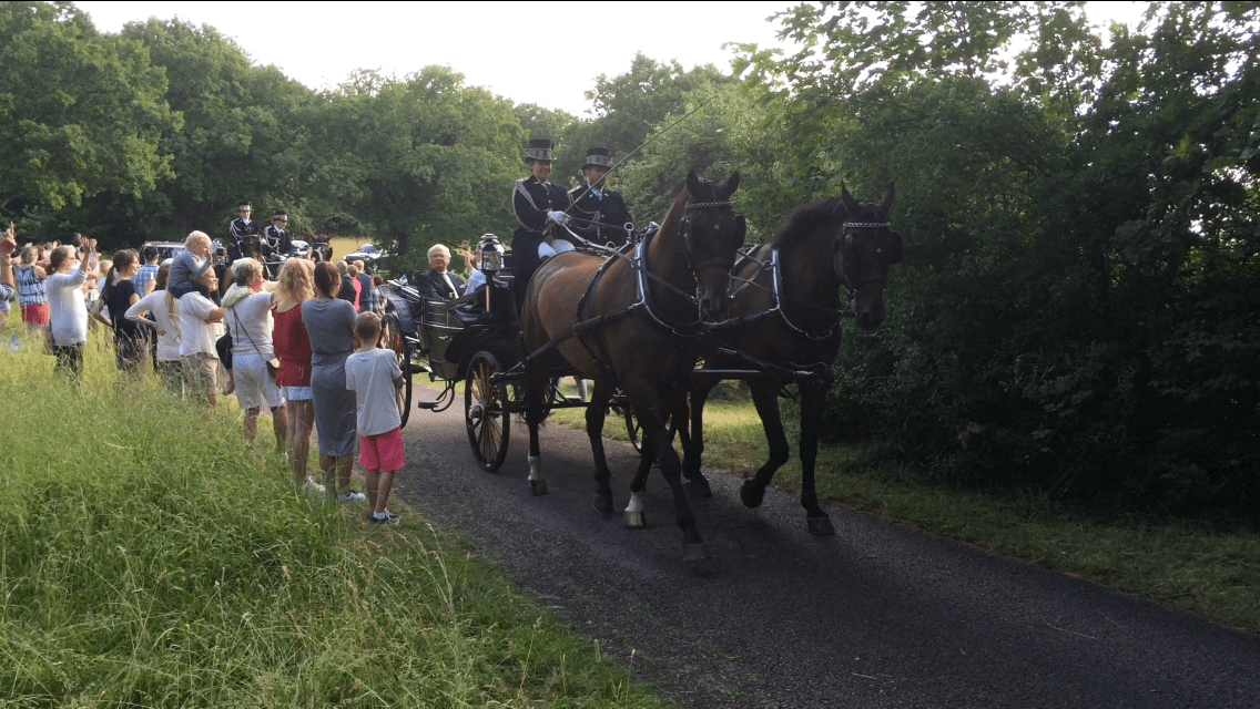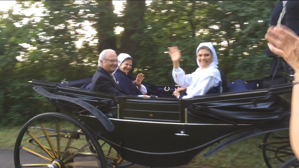 Efter ett tag kom hela kungafamiljen åkandes – påväg till firandet av Kronprinsessan.