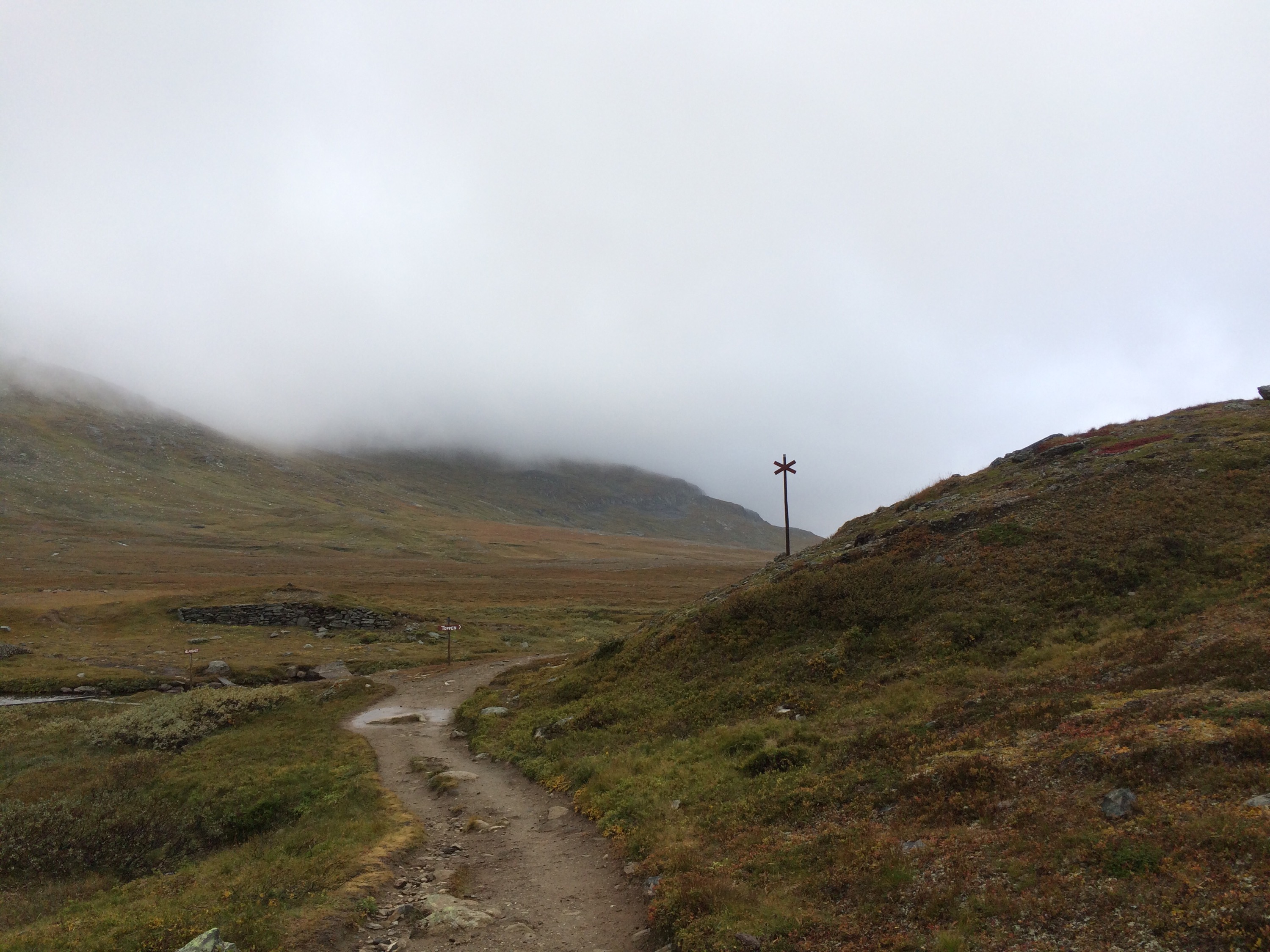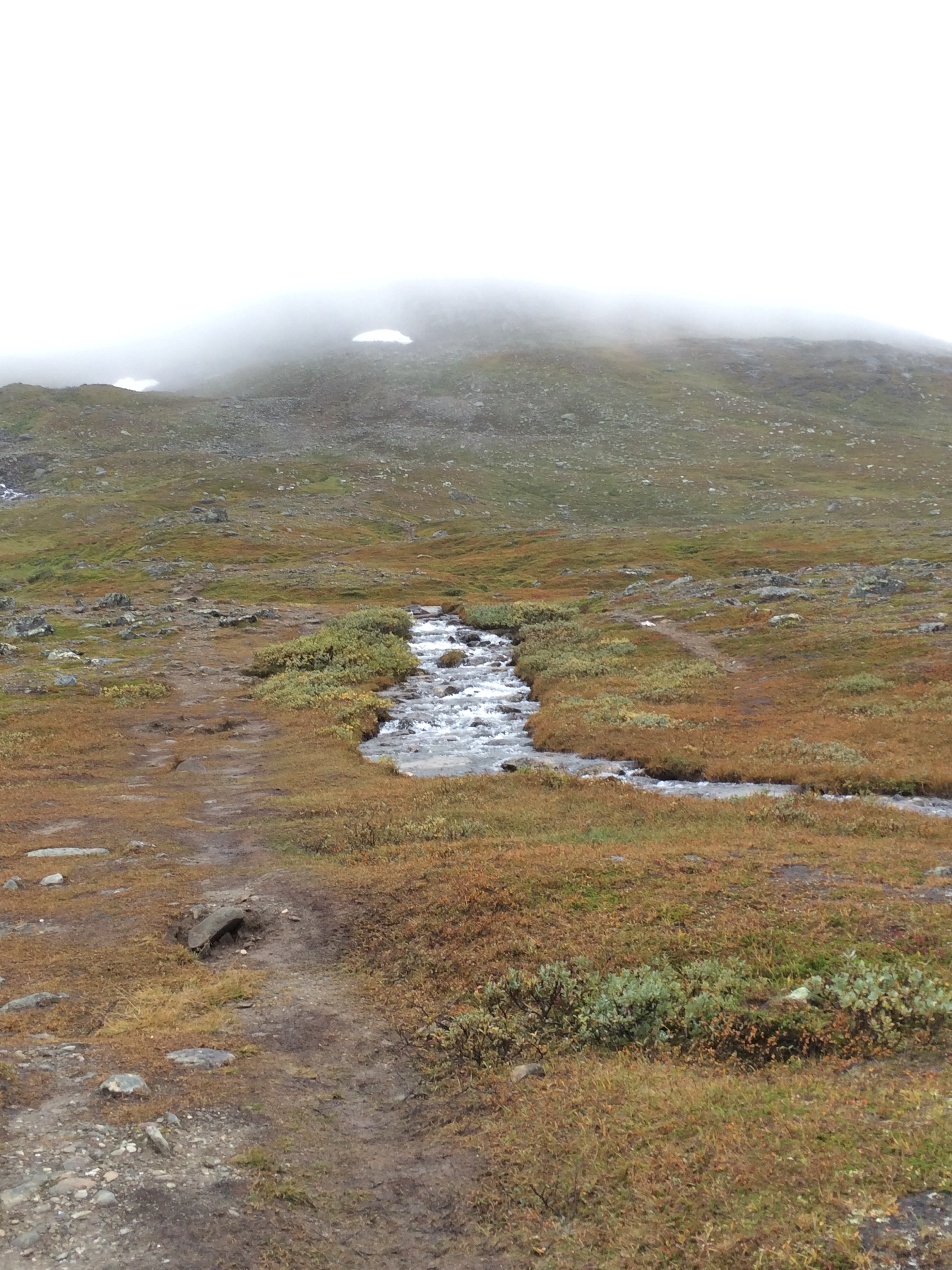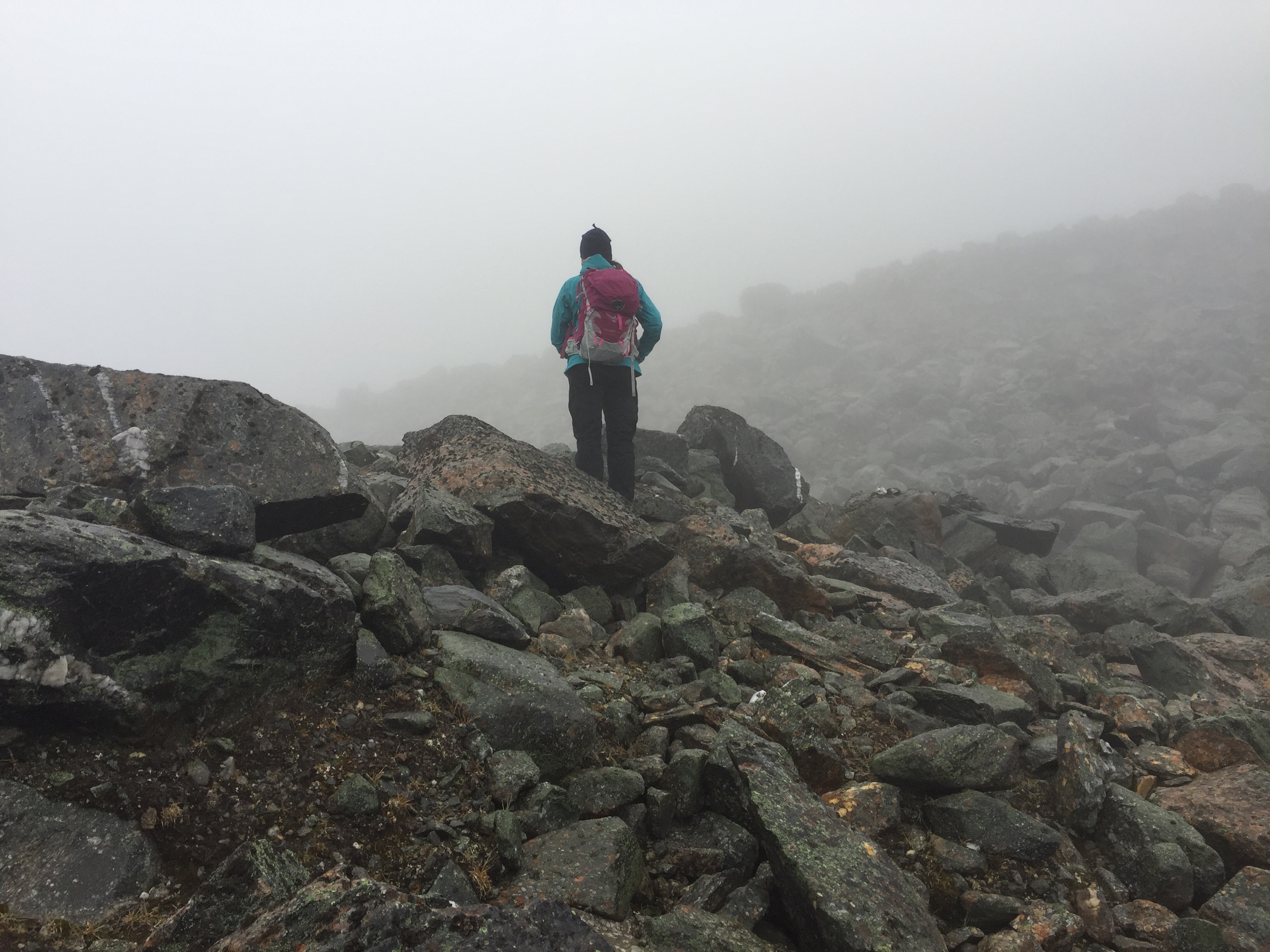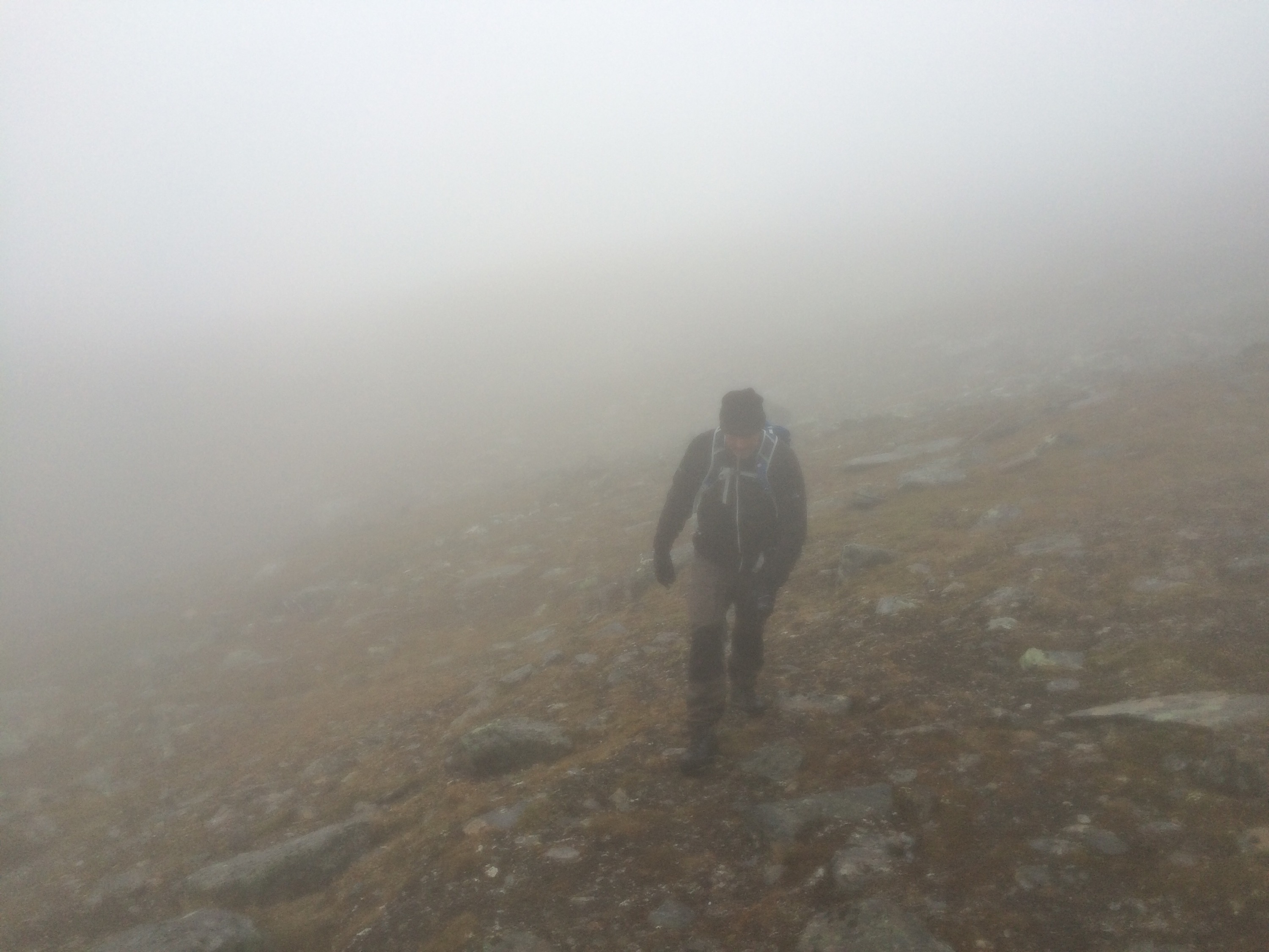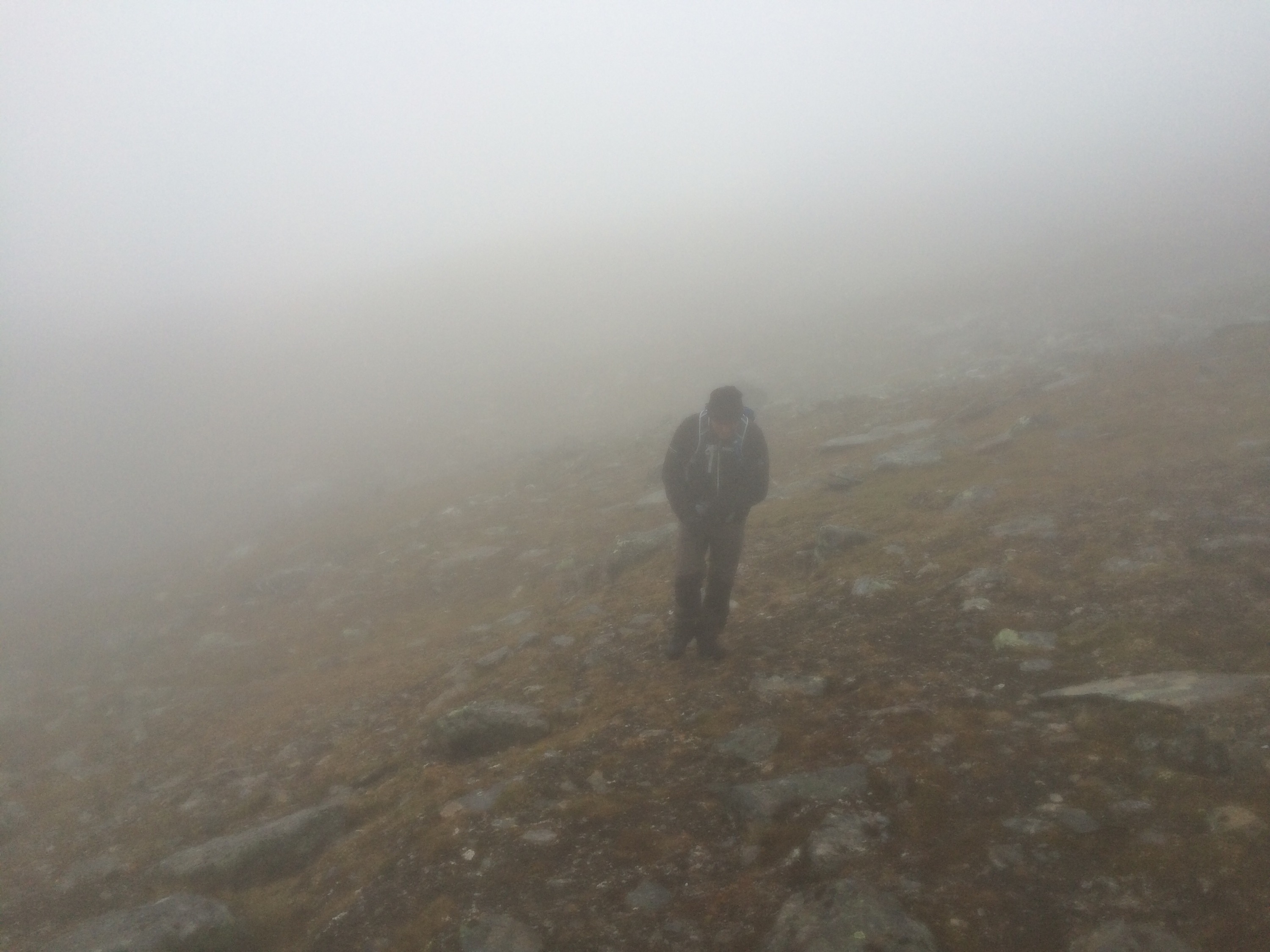 Vi traskade på och det var väldigt dimmigt så vi såg inte toppen på hela tiden. Detta hjälpte nog till att vi inte riktigt hade koll på åt vilket håll vi skulle gå.