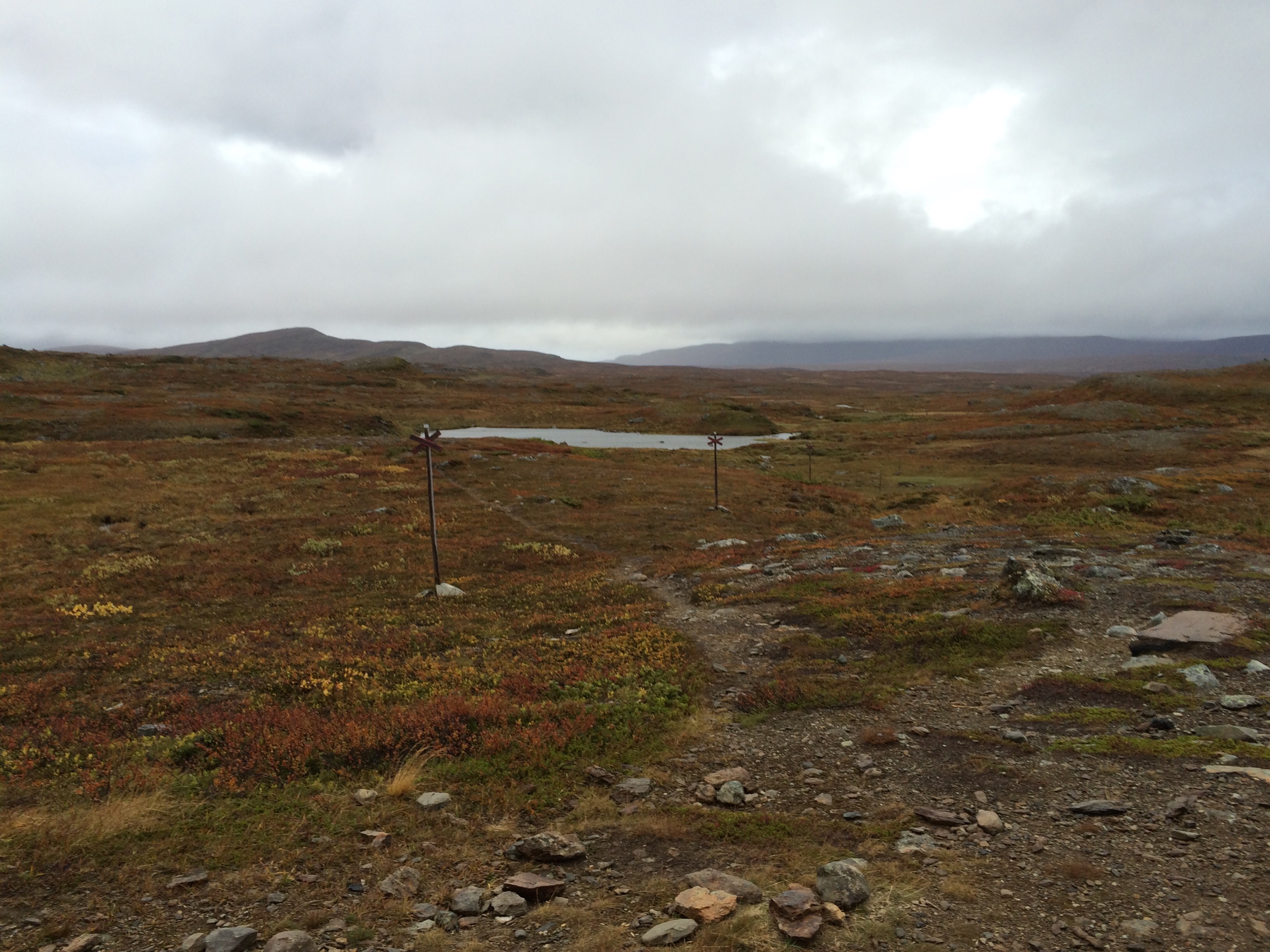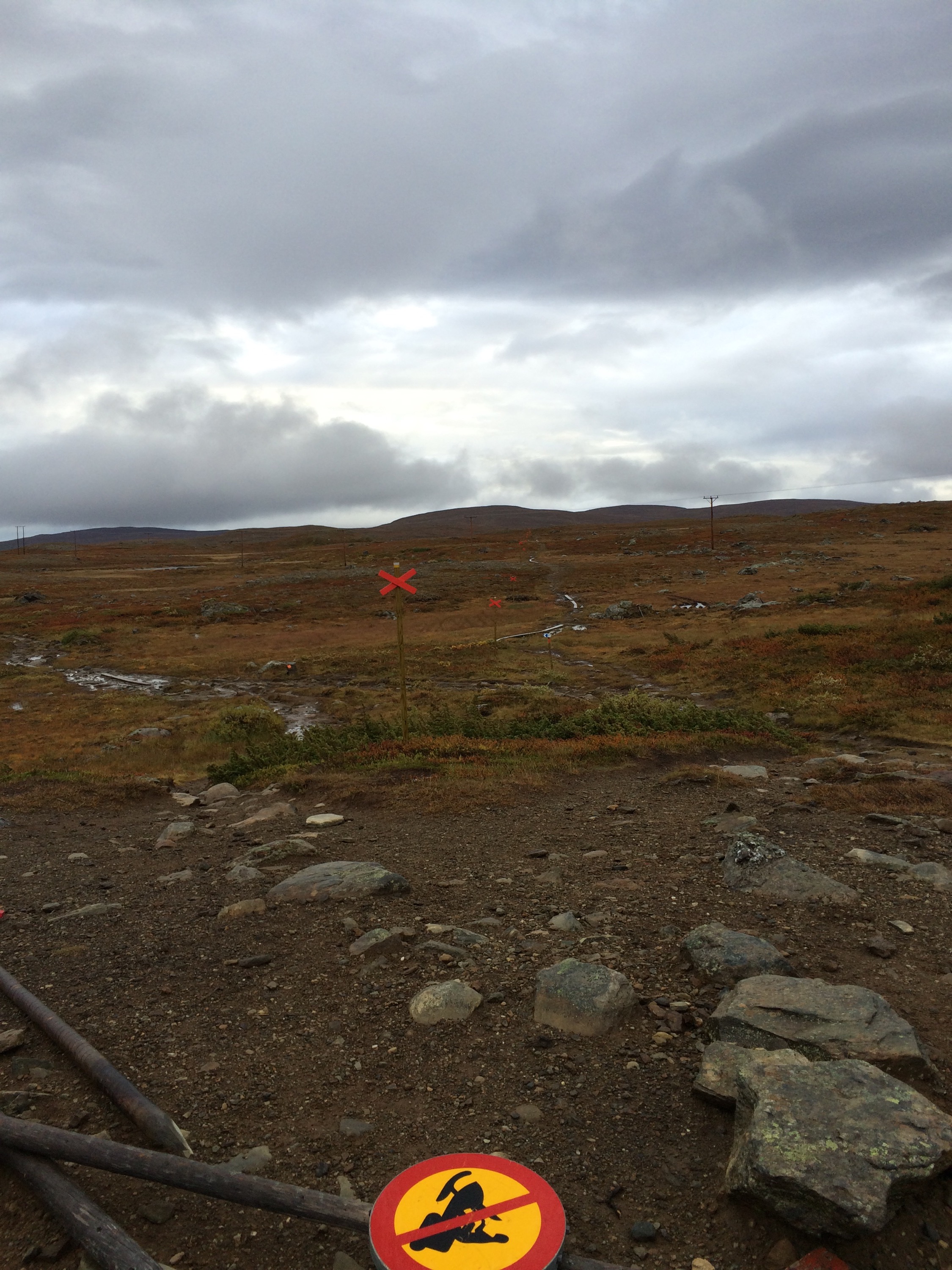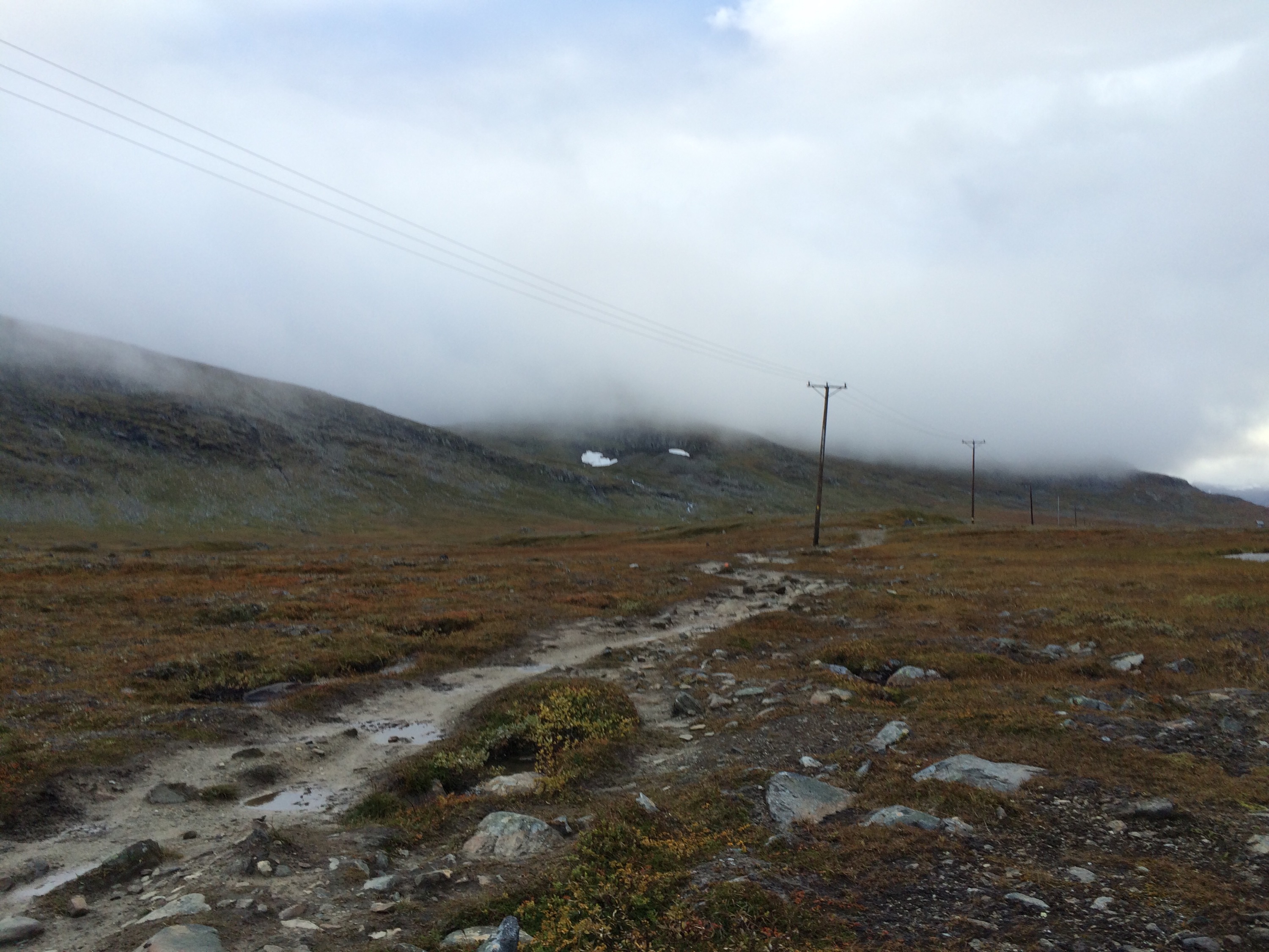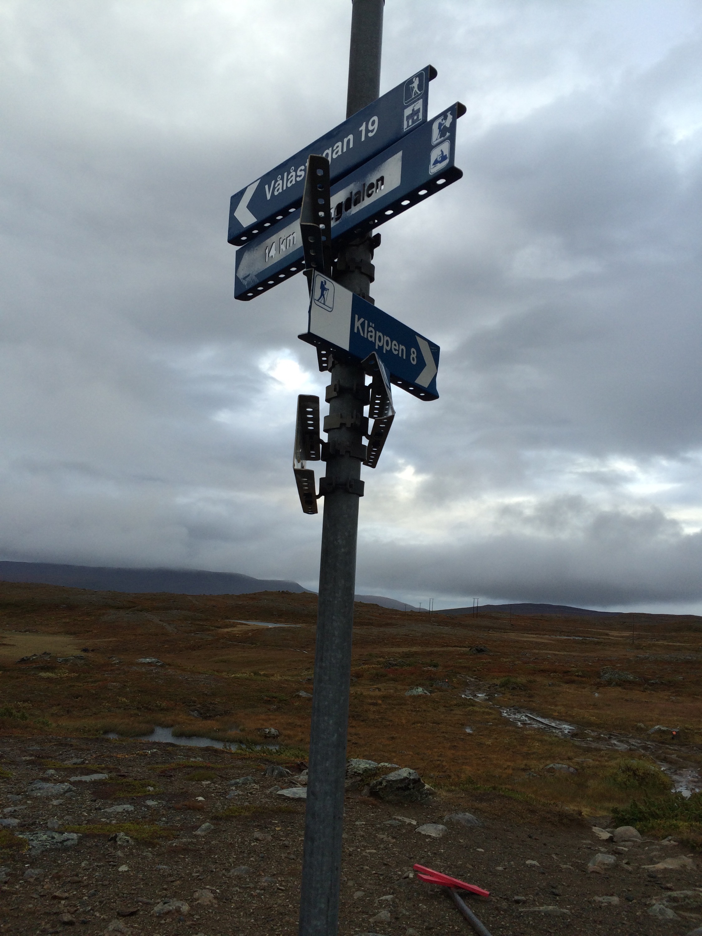 Efter drygt 8 km så blåste det så hemskt så att det gick inte att cykla. Vi hade även dragit cyklarna en stor bit av sträckan så vi beslutade att låsa fast dem i en stolpe och fortsätta till fots. Det var ett väldigt bra beslut och jag kände direkt att det är så man ska avnjuta fjällen. Till fots för att kunna njuta av den vackra naturen.