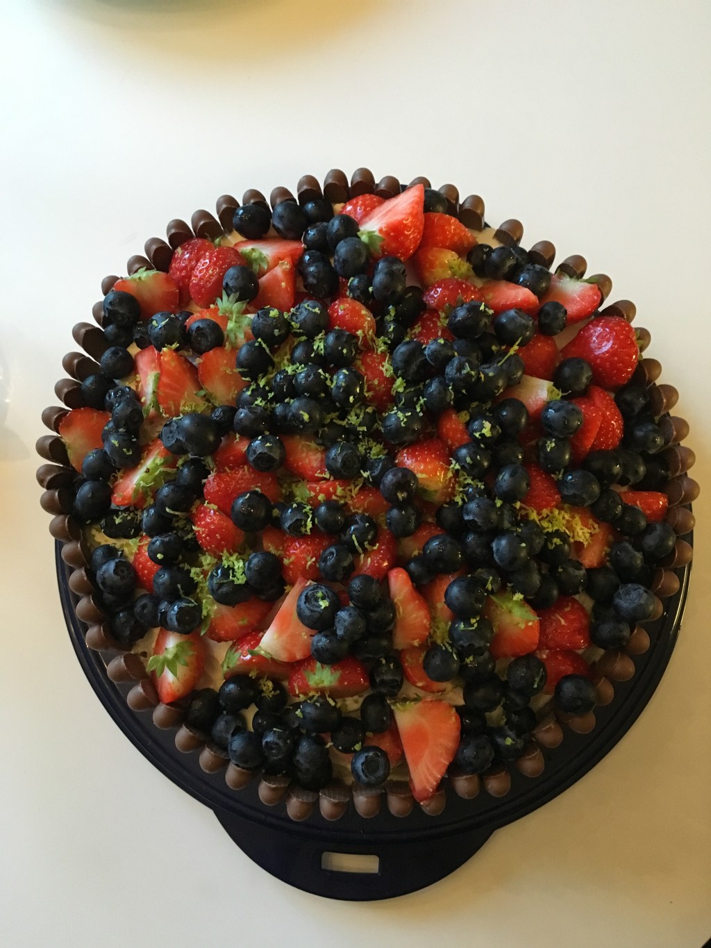 Jag gjorde en tårta med blåbärsmosse och vitchokladganache. Tycker själv att den blev riktigt fin 😉
