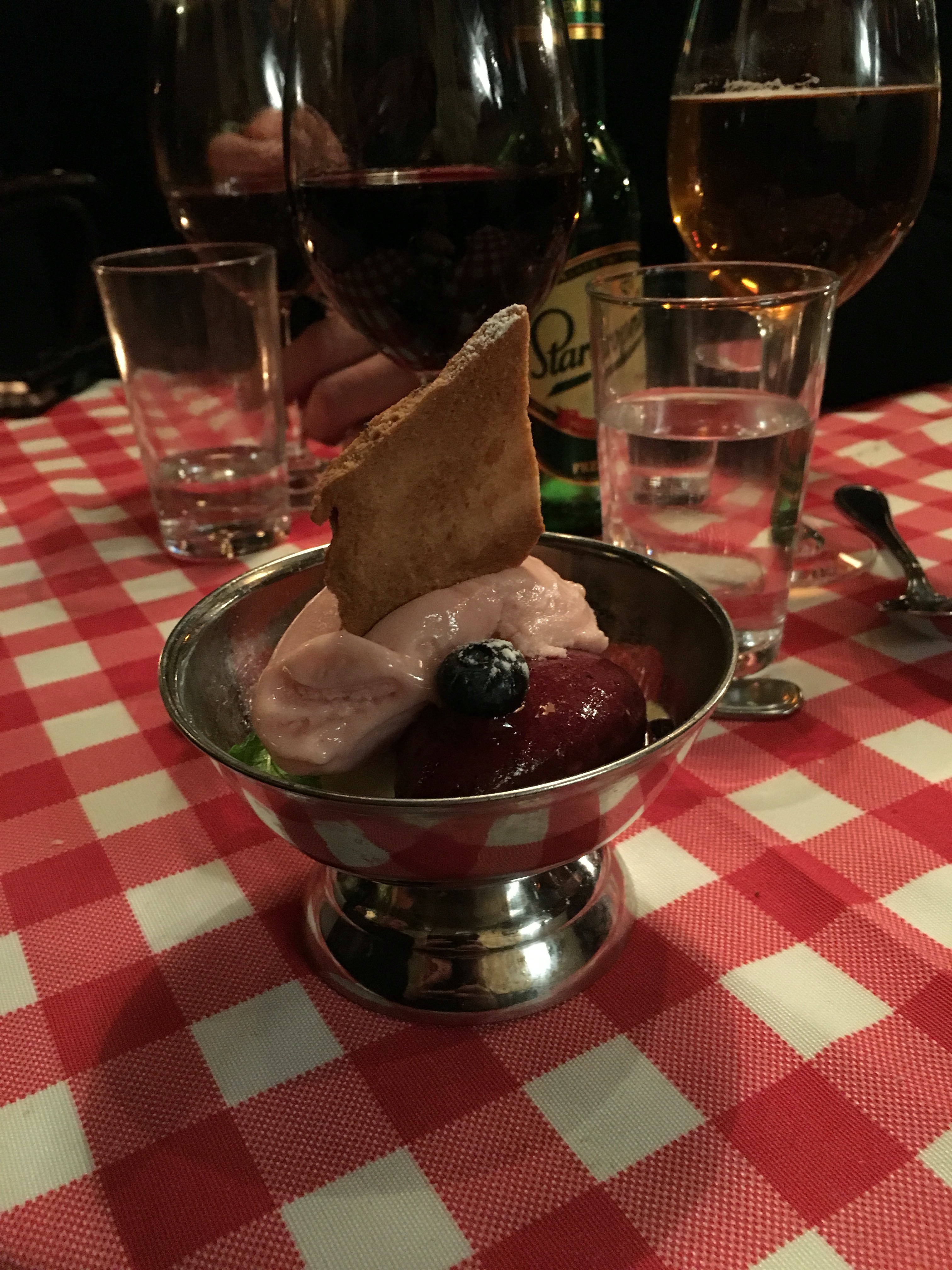 På torsdag kväll var hela gänget ut och åt på Grill. Mysigt ställe, men mina förväntningar var kanske lite för höga. Maten var OK men stort minus för att köttet var segt. Plus för att vi fick prova flera olika förrätter där Vitello Tonnato (kalv, tonfisk, jordärtsskocka) var den godaste.
