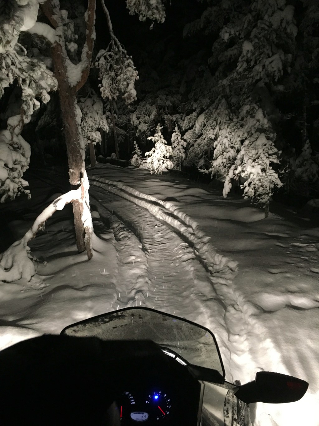 Som t ex åka skoter 😉 Vi testade i måndags och då var det på gränsen för lite snö på sina håll, det skrapade i bland stubbar och stenar i skogen – men nu borde det vara perfekt.