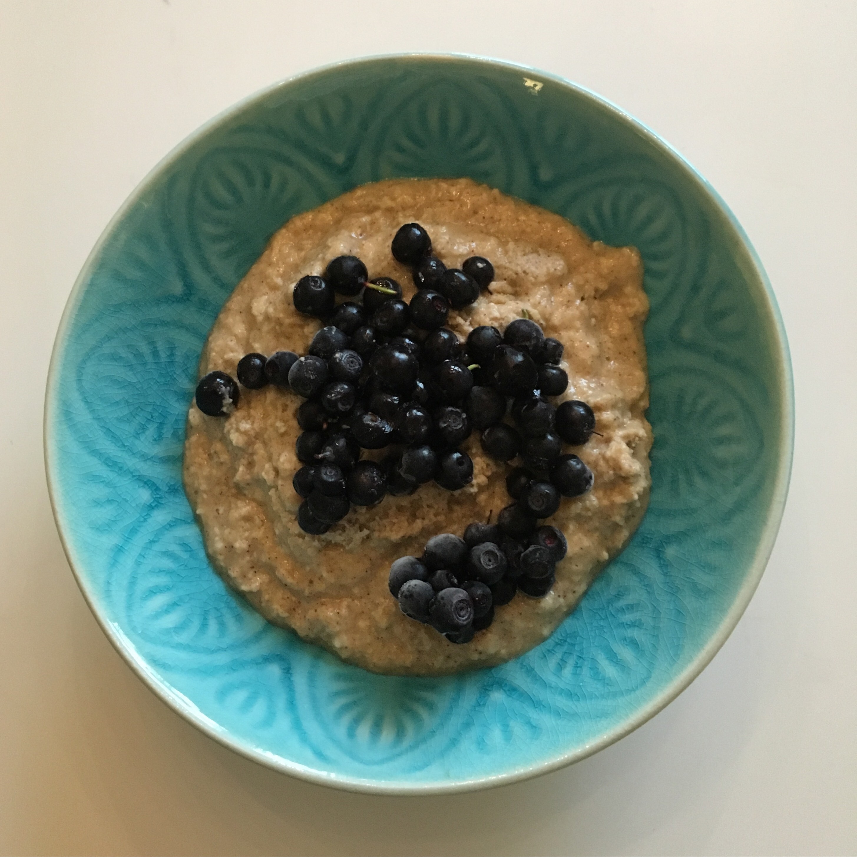 Dagens frukost paleokokosgröt med blåbär. Gott och mättande.