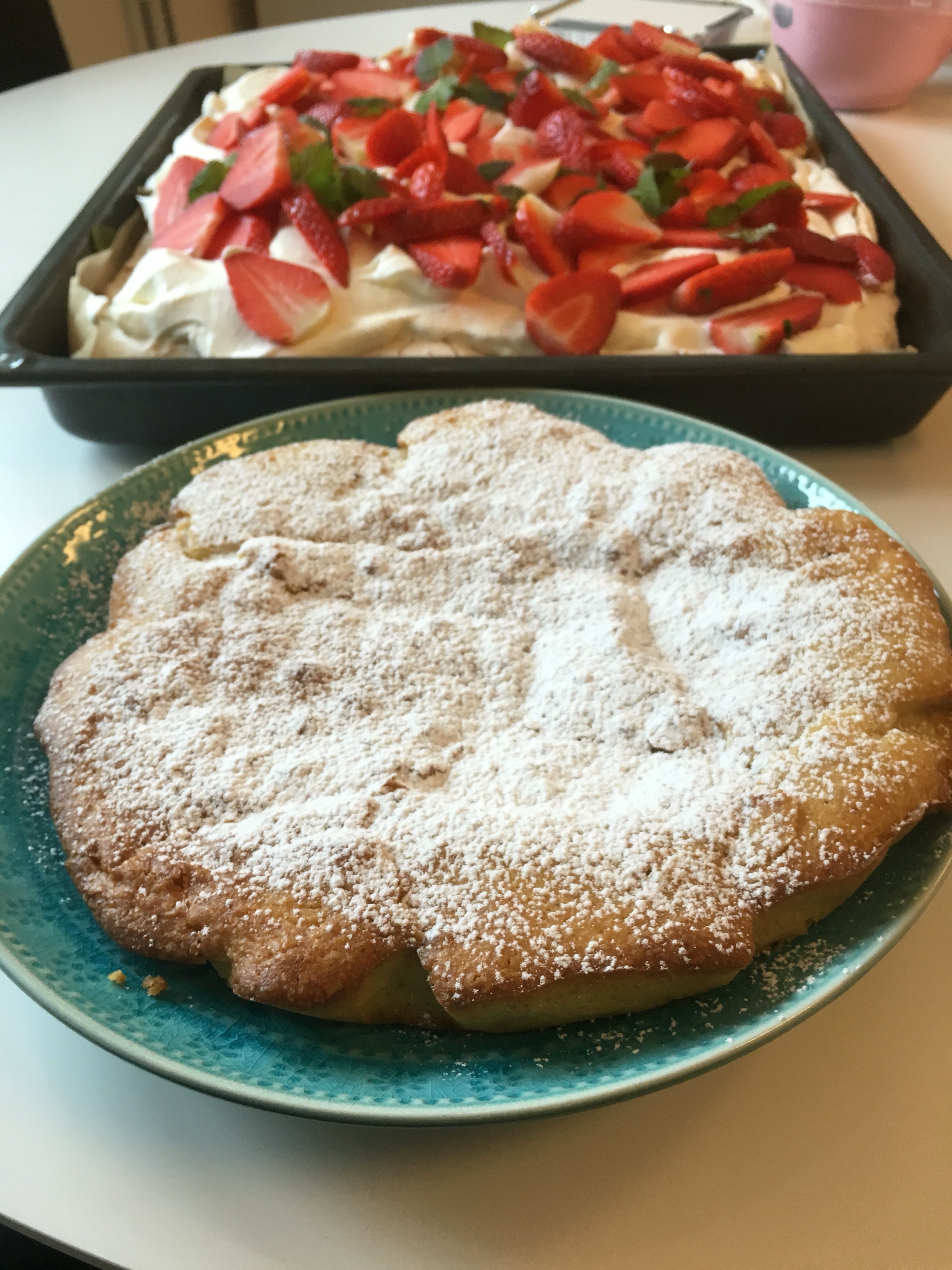 Receptet räcker till en långpanna. Vill du göra en normalstor tårta så halvera receptet.
