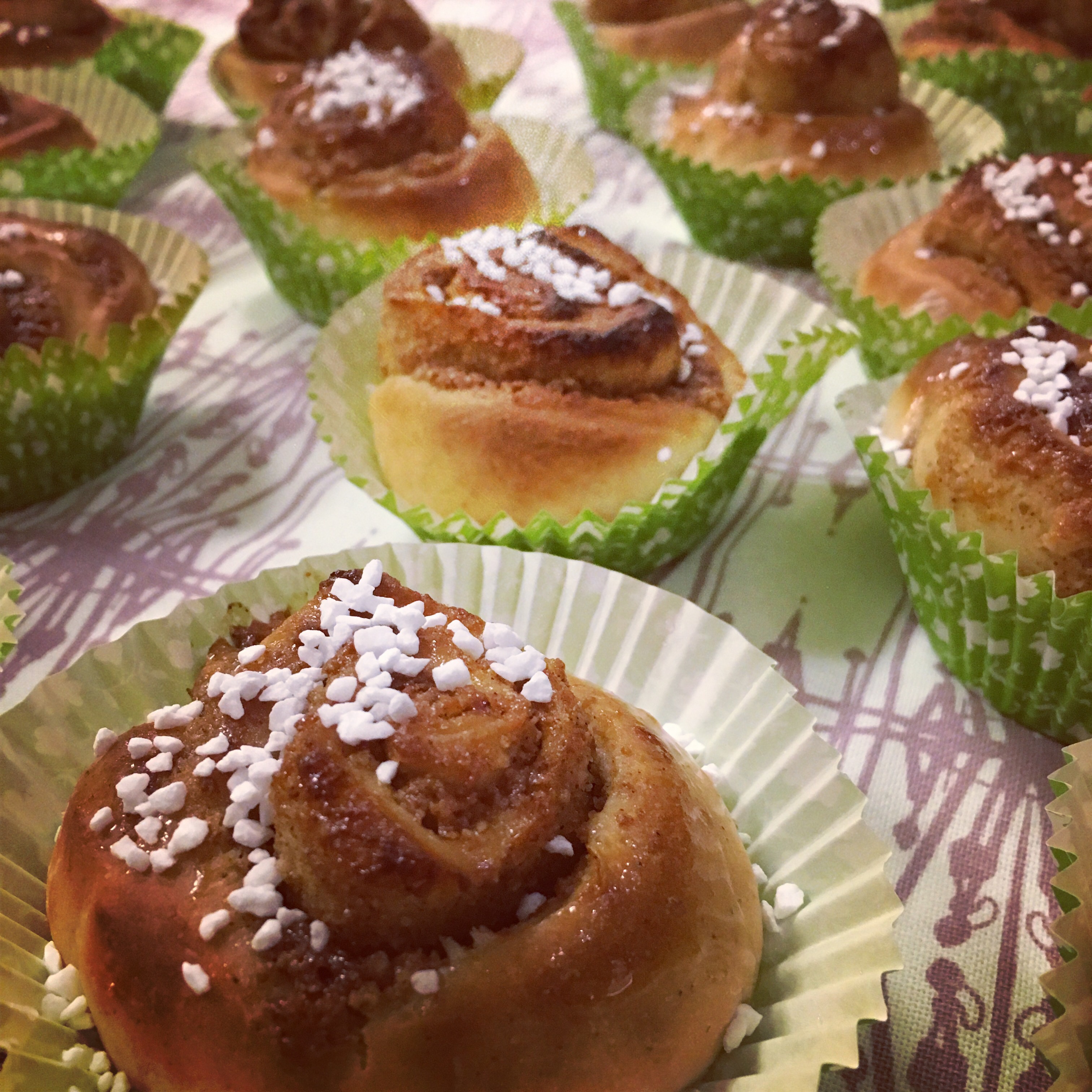 Det enda som inte var toppen med receptet var att man skulle ha på pärlsockret efter gräddning…Jag brukar alltid pensla med ägg och ha på sockret innan gräddning och då stannar sockret bättre på bullen. Här skulle man pensla med sockerlag efter gräddning och sedan strö på pärlsockret.