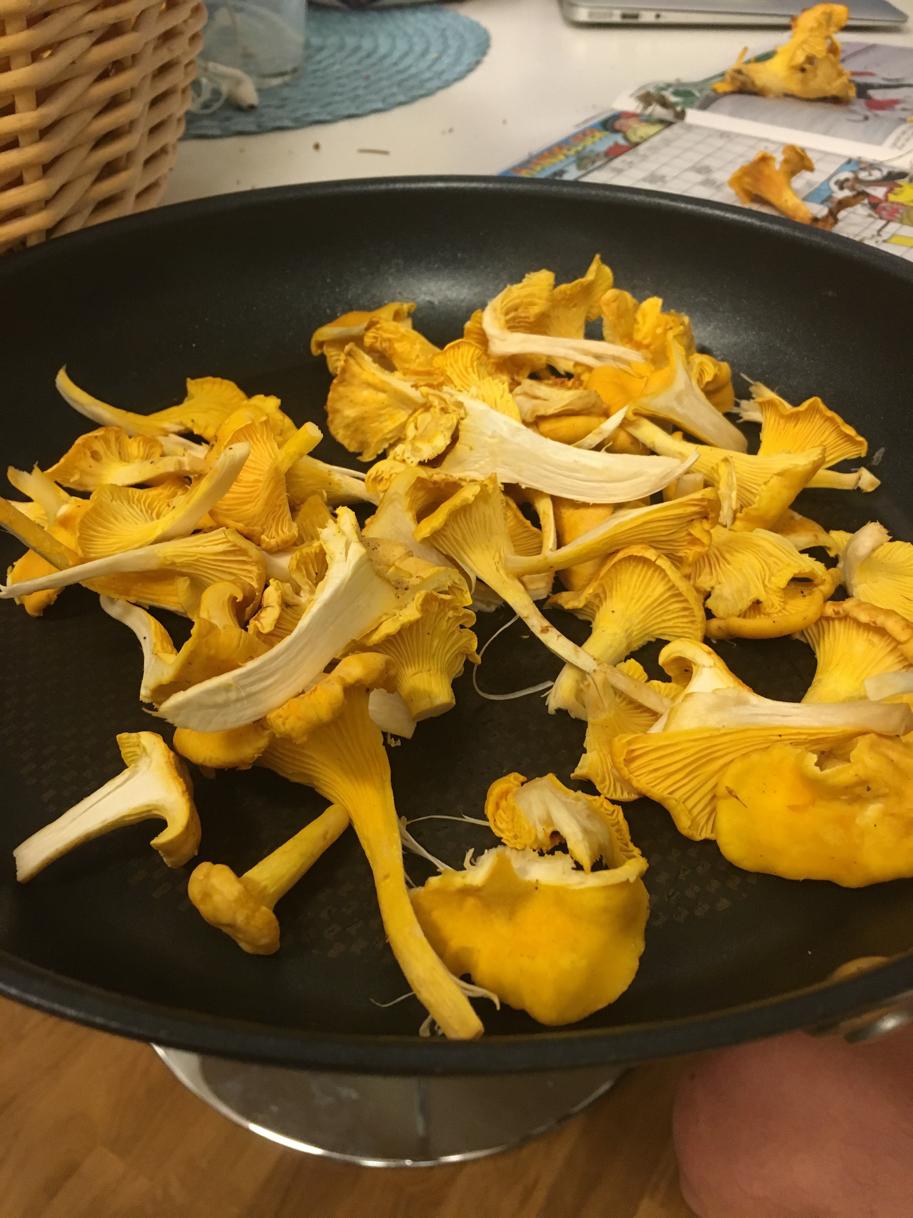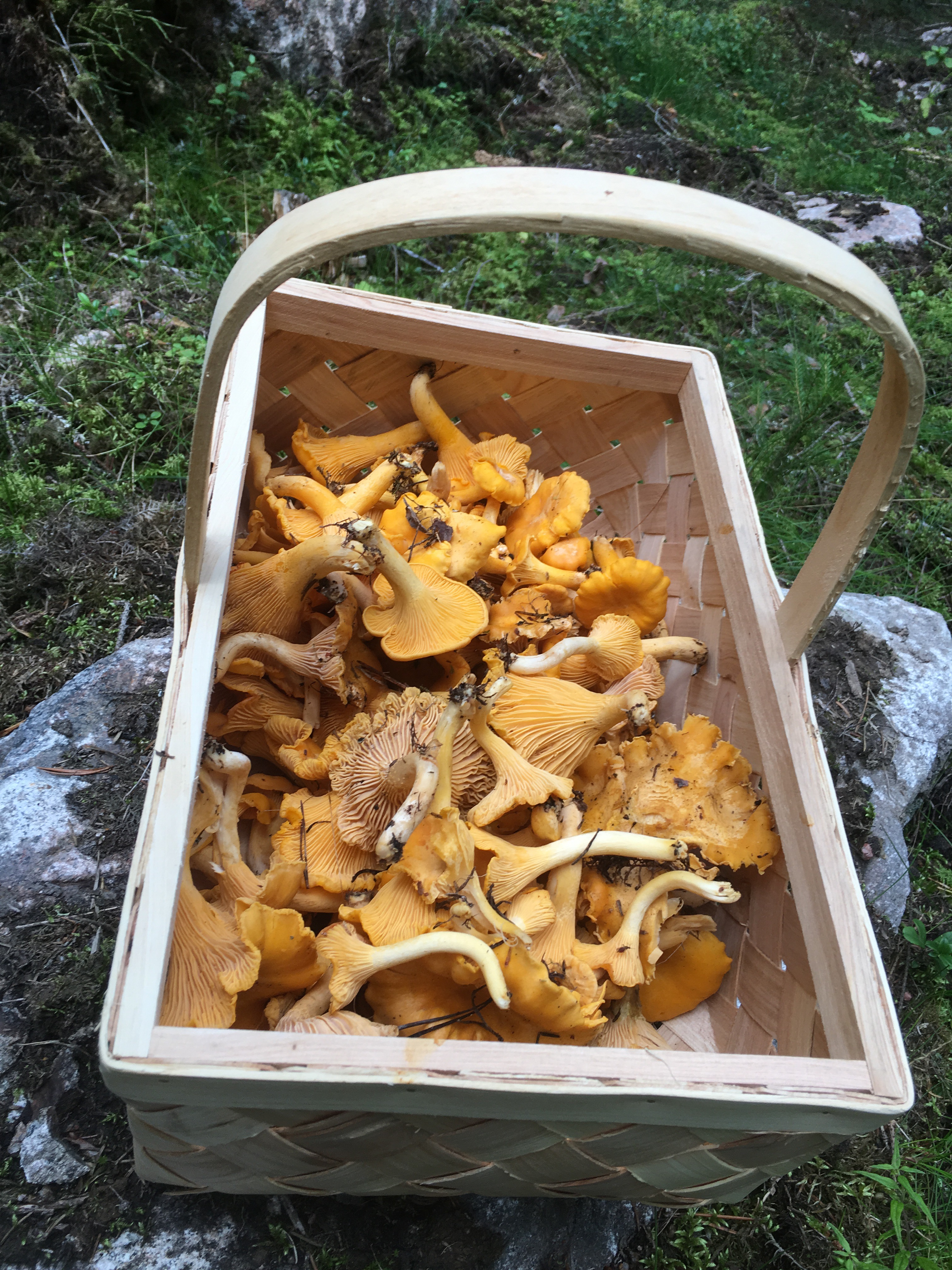 Igår var vi ut en sväng i skogen. Hittade oväntat mycket kantareller – jag var sysselsatt till framåt 22.30 med att rensa. Nu har vi ett gäng påsar i frysen att avnjuta i vinter.