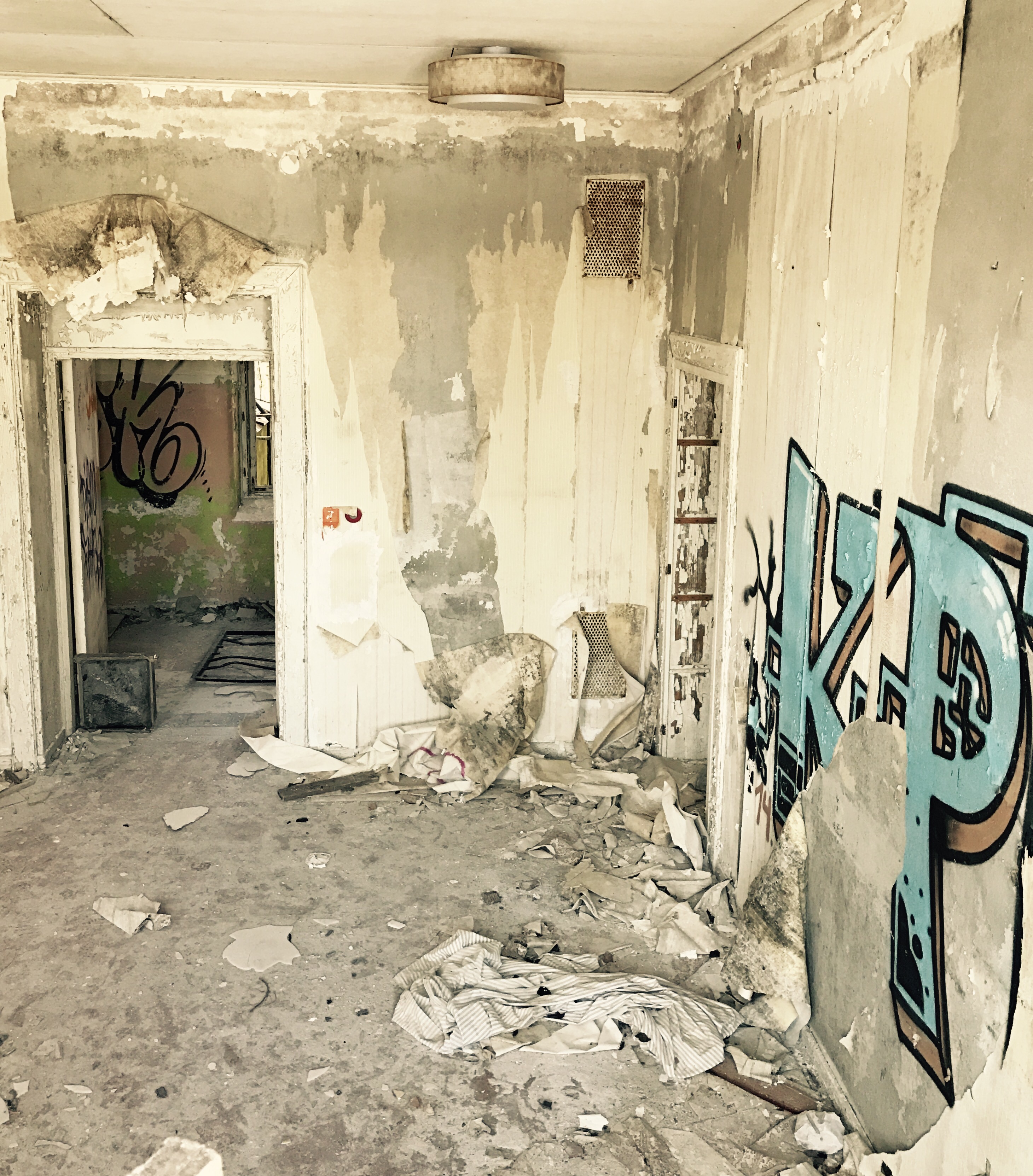 Igår åkte jag, dottern, min ena syster och hennes två barn på en liten utflykt. Vi hade siktet inställt på det nedlagda mentalsjukhuset i Säter (Fasta Paviljongen). Jag har länge velat åka dit för att leta efter en geocache samt fota lite invändigt innan hela byggnaden jämnas med marken.