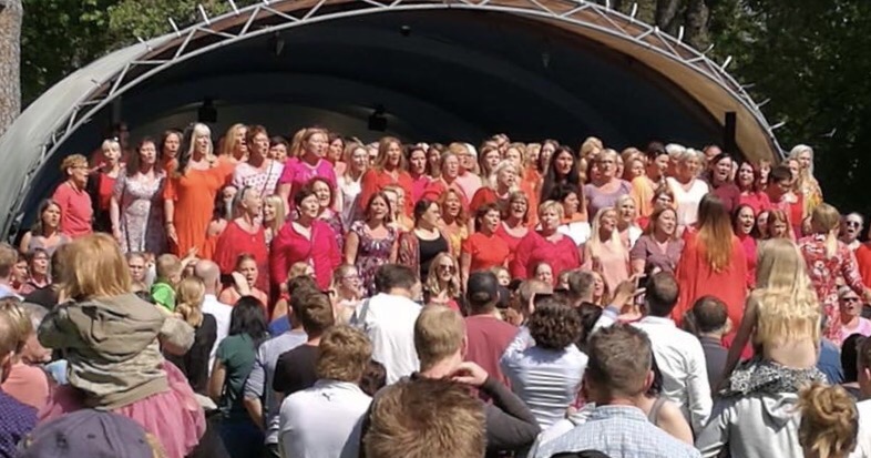 Vår Joyvoice-kör (tillsammans med Gävles kör) sjöng 5 låtar till ganska stor publik. Riktigt mäktigt att sjunga så många tillsammans. Vi var nog ca 120 personer.