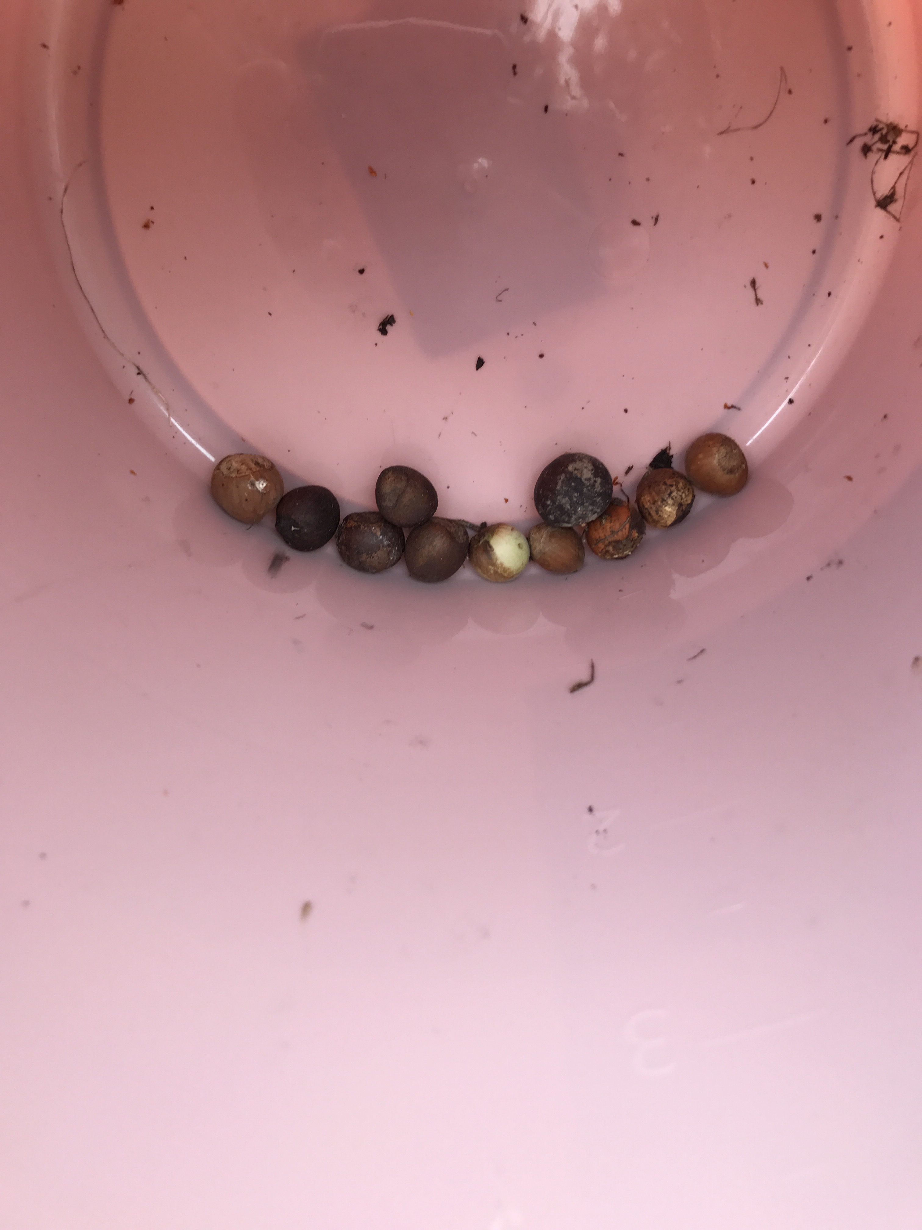 Hasselnötter blev inte så många plockade eftersom det började skymma och det var svårt att se dem på marken bland alla löv. De jag hittade var redan skalade – så antagligen någon ekorre som tappat dem?