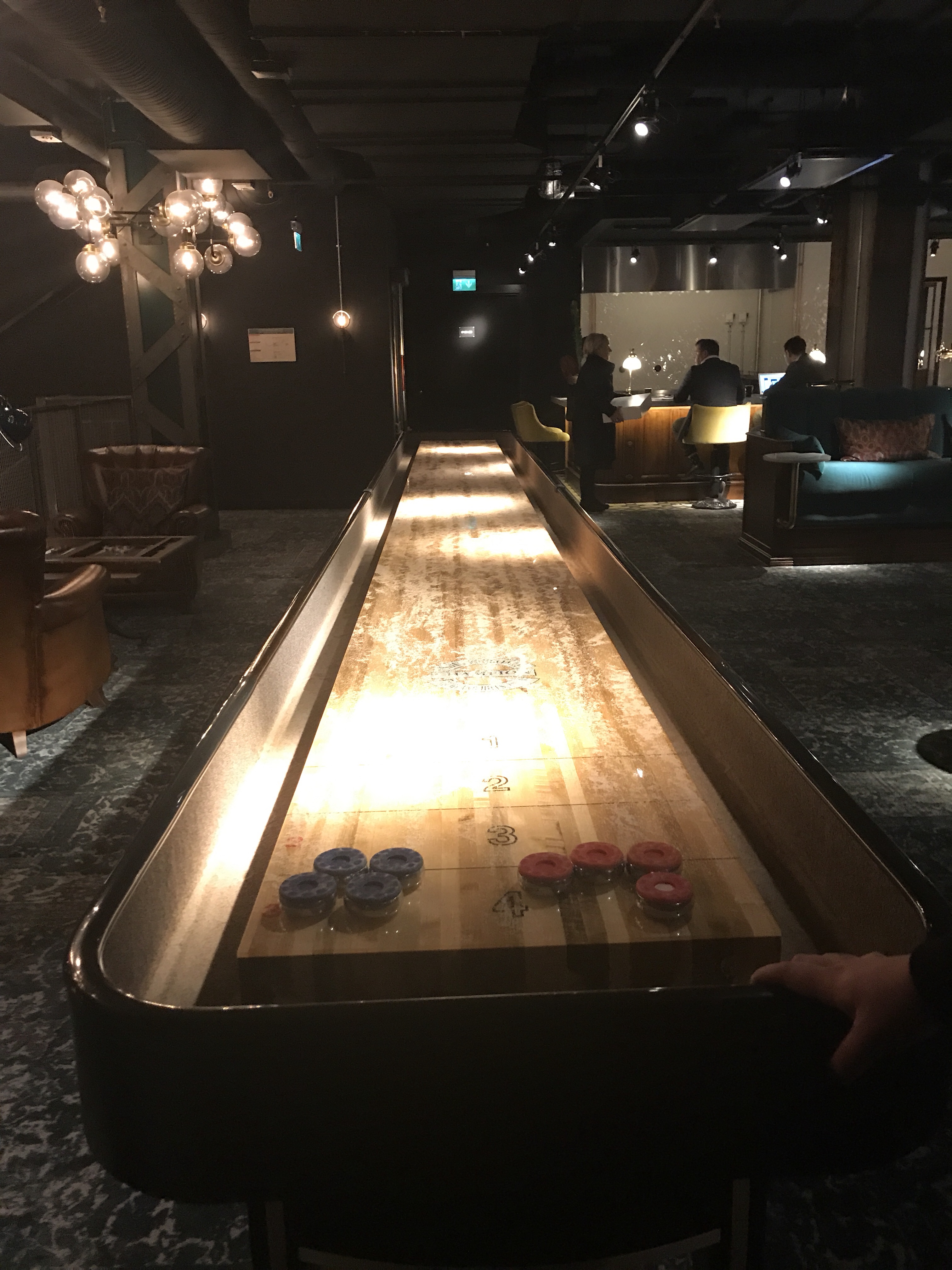Efter frukost tillbringade vi lite tid i ”playground”. Där fanns dataspel, biljard, shuffleboard m .m. Riktigt roligt och trevligt.