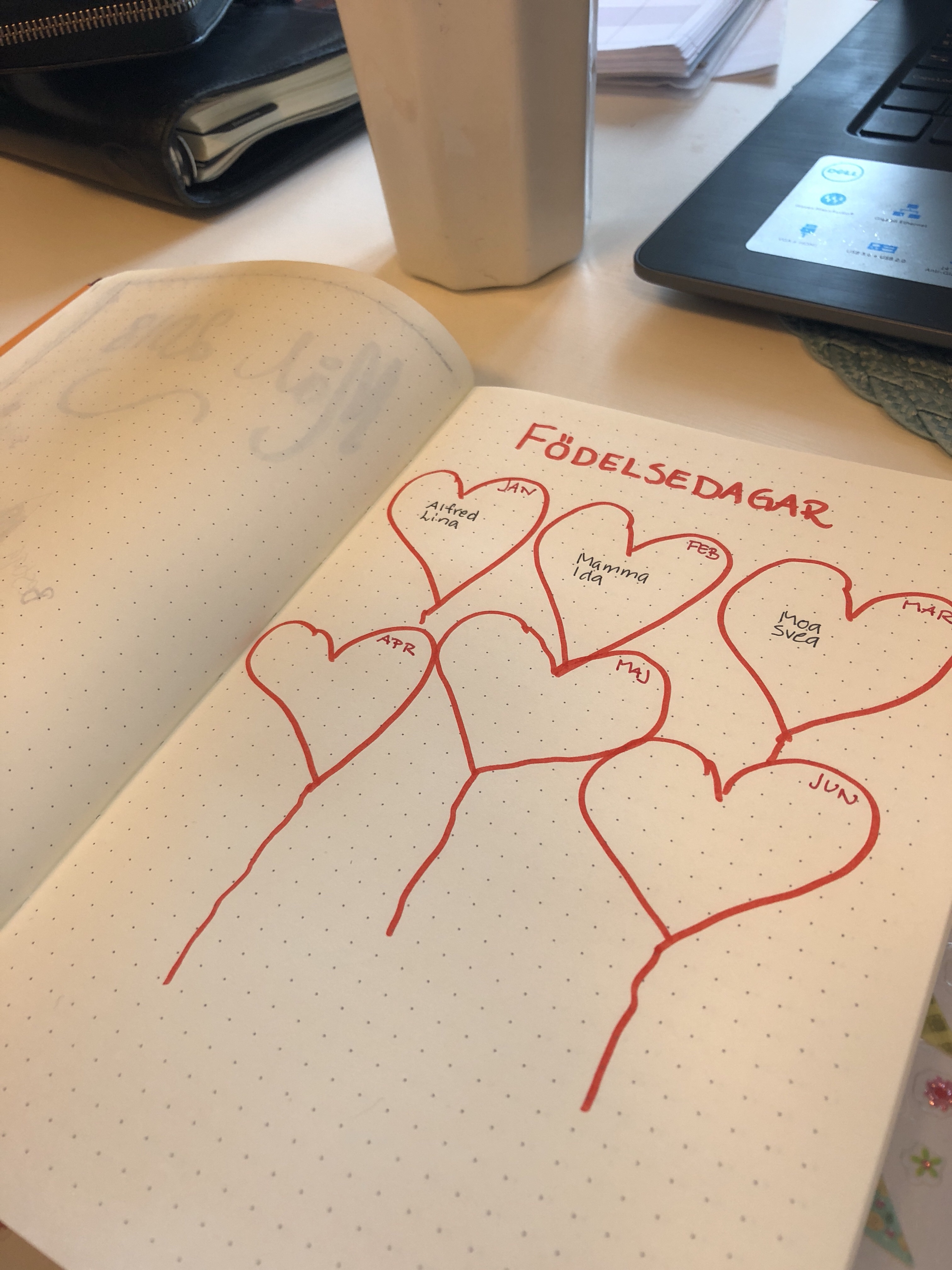 Jag har haft mycket tid över när jag väl har varit vaken 🙂 så jag ”ramlade över” Bullet Journal. Det är en metod där du använder papper och penna och samlar anteckningar, att-göra lappar, kalender och hela hjärnan på ett och samma ställe. Lite att gå tillbaka och göra som man gjorde innan dator och mobil tågade in i våra liv.