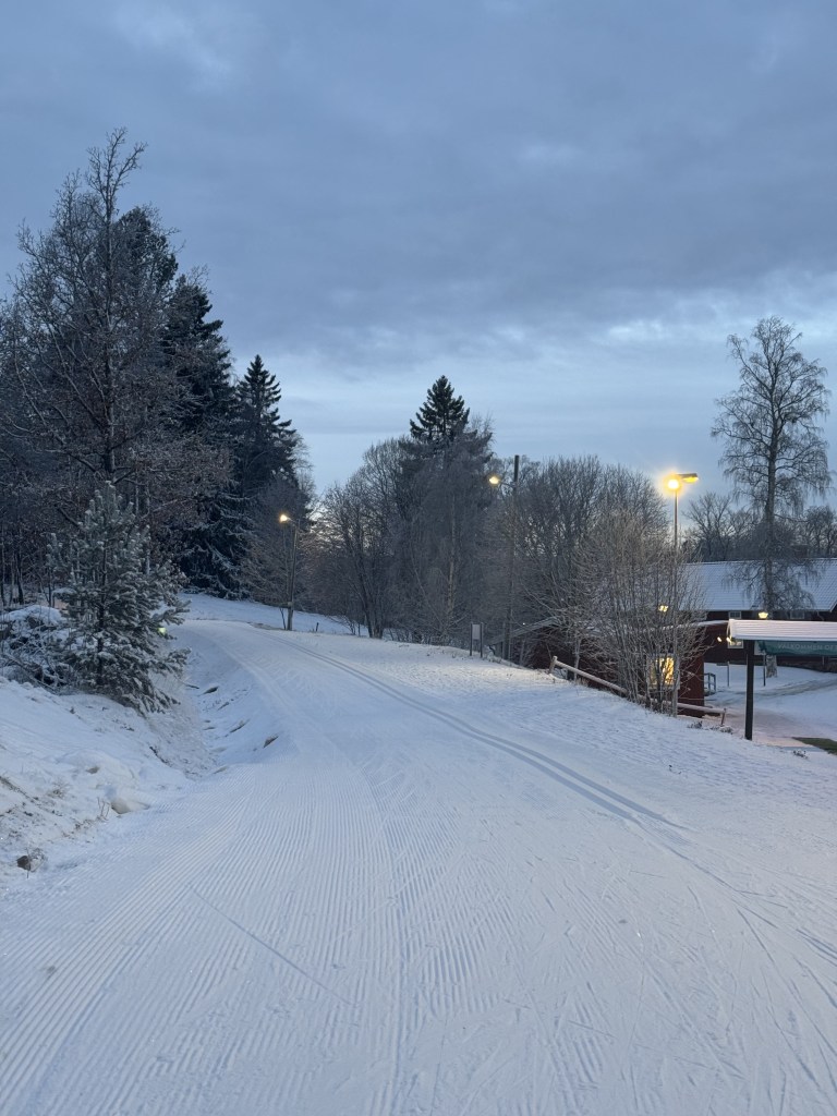 Det känns anpassat för någon med mer träningsmängd än mig (just nu), så jag plockar bort skidor på lördagen och ersätter med löpning – väldigt lätt och försiktigt för att komma igång.