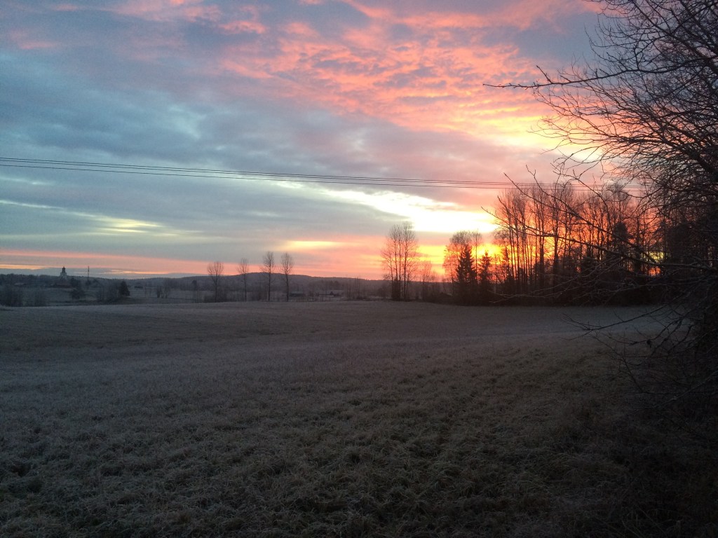 Gårdagens lucka – En morgonpromenad i mysigt julmörker. Fast solen var påväg upp när jag fotade 😉