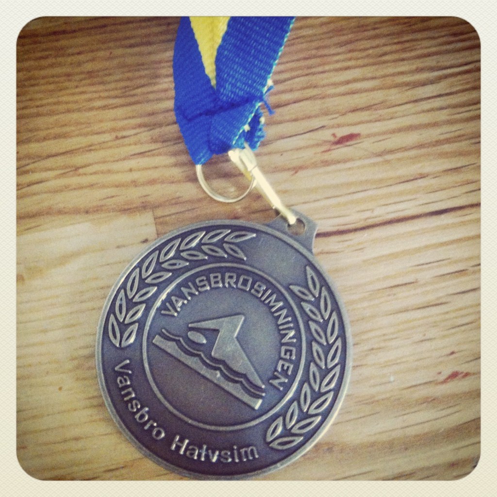 Simningen kan sammanfattas i två ord: Kallt och nöjd. På vägen upp var vi lite oroliga Kicki och jag…vad hade vi anmält oss till egentligen, hur skulle det gå? Båda två var opeppade, otränade (när det gäller simning) och oduktiga (vill inte skriva odugliga – men iallafall min känsla när det gäller simning är oduglig…;)…