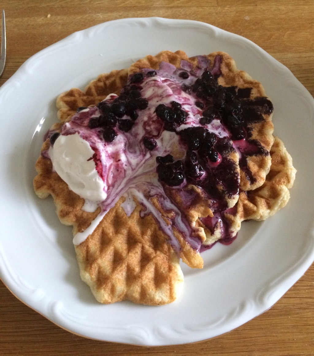Okej, nu var inte den här bilden så himla vacker som ”proffsens” matbilder – men jag var störthungrig och måste få i mig nåt snabbt – tänkte inte på att det måste vara snyggt också 😉 Kollade på kanellängden som låg på bänken men som tur var besinnade jag mig 😉 Snodde ihop Paleovåfflor och…